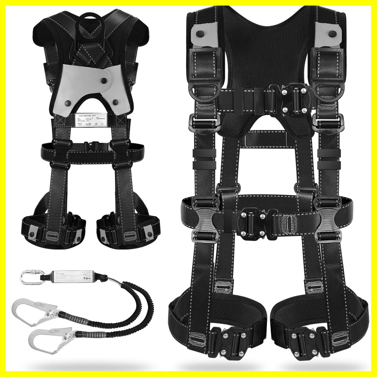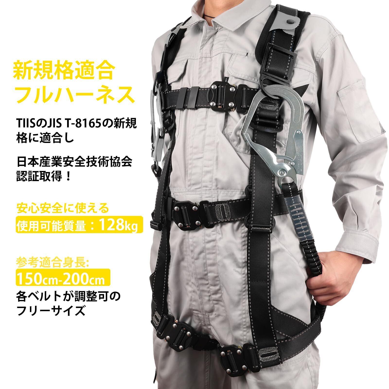 [TT TRSMIMA] フルハーネス 新規格 セット フルハーネス安全帯 - 安全保護 ワンタッチ バックル 脱着簡単 ハーネス安全帯 ランヤード付き 2丁掛け 肩パッド 収納袋付き 墜落制止用器具 高所作業用 電気工事 落下防止