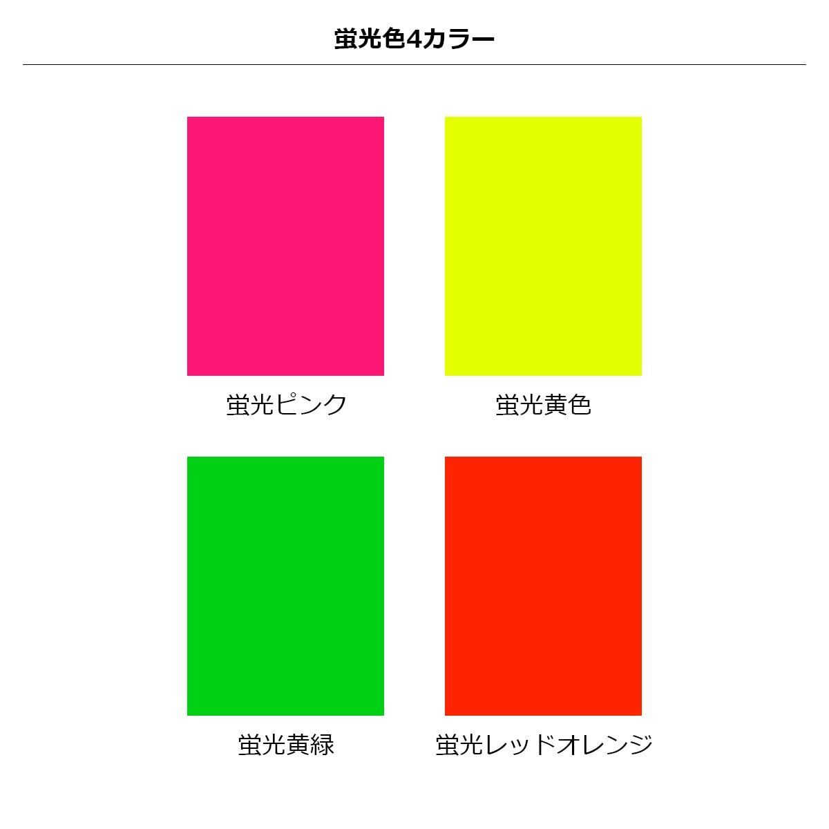 【仕様】 サイズ:A4(210×297mm) マット上質紙(黒のみ光沢紙) 背面シール仕様 カラー:黒・白・赤・蛍光ピンク・蛍光黄色・蛍光黄緑・蛍光レッドオレンジ・オレンジ・ピンク・水色・青・紫 各1枚 (12色) ※耐水性はありません。