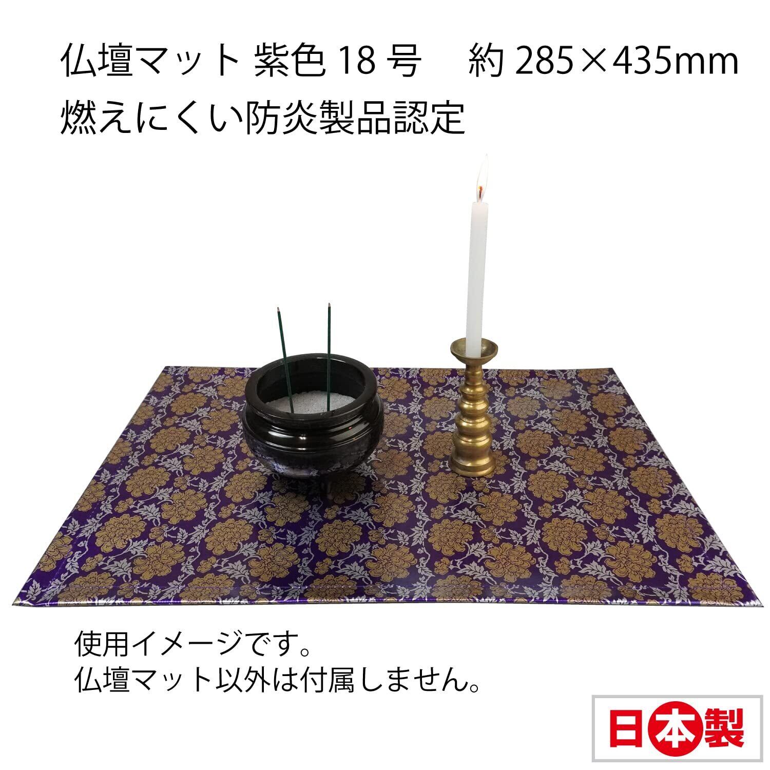 ファイン 仏壇マット 紫色 18号 約285×435mm 燃えにくい 汚れもサッとひと拭き 防炎製品認定 日本製 91502