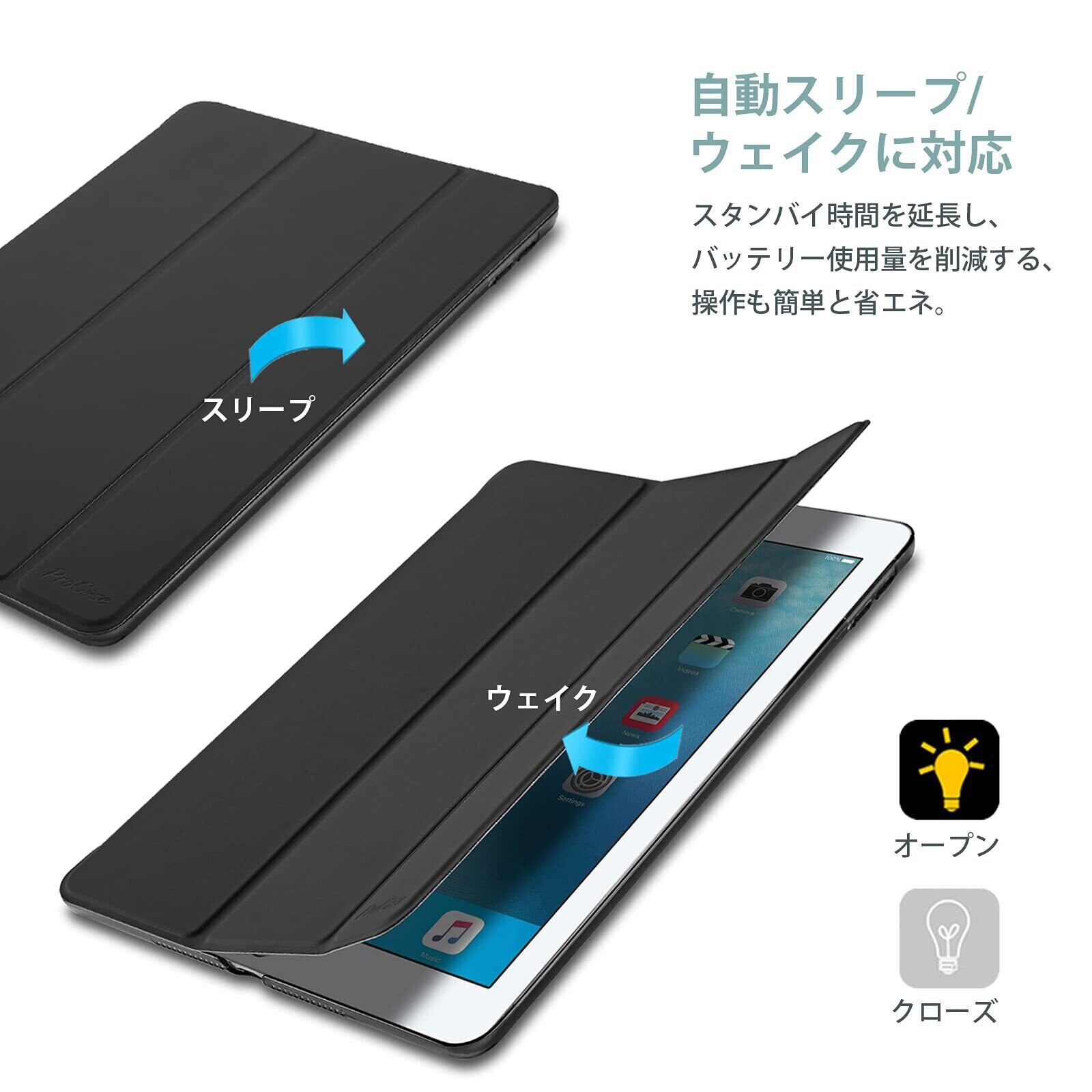 ProCase iPad 9.7"(旧型)ケース スマート 超スリム スタンド フォリオ保護ケース 半透明フロスト バックカバー 対応機種:iPad 9.7" 第6世代 2018 / 第5世代 2017 - ブラック
