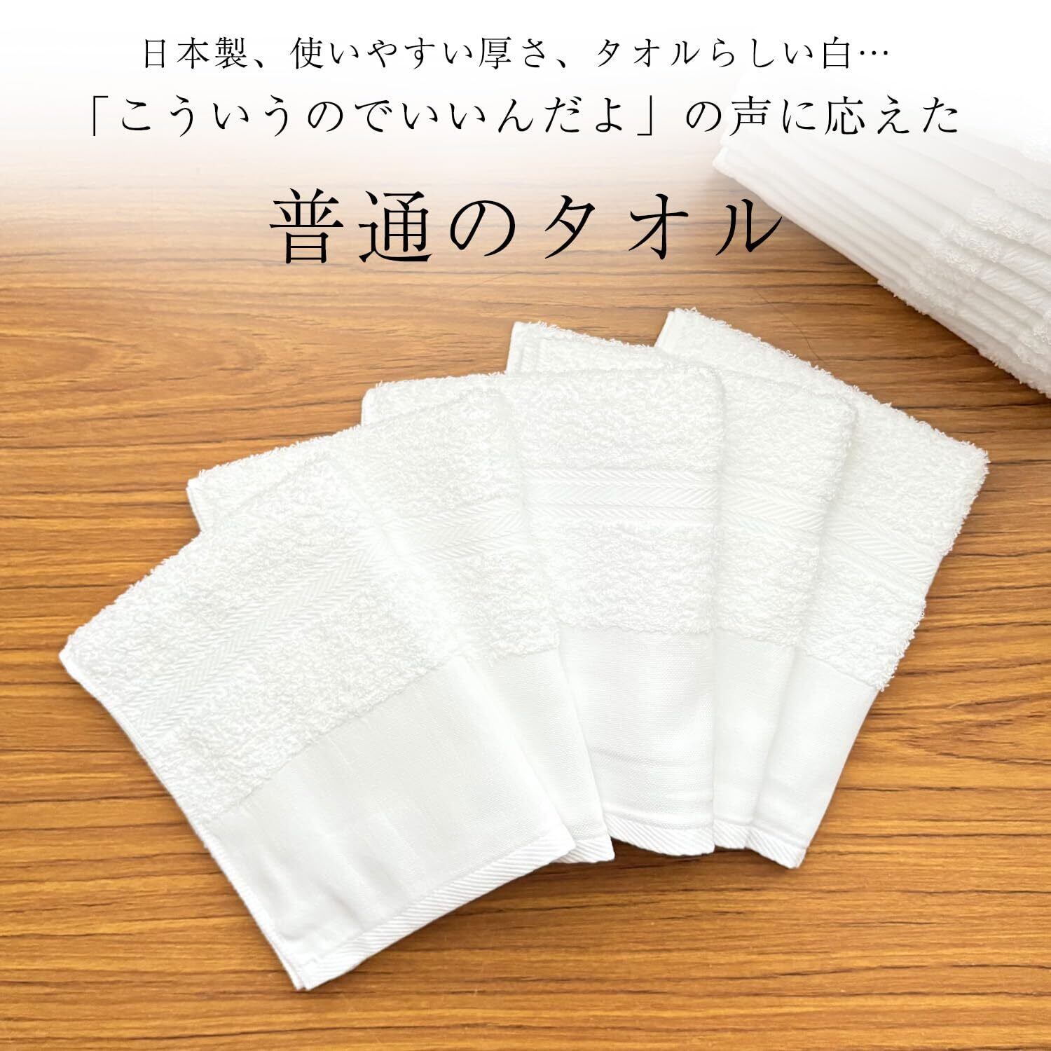まとめ買いに便利な12枚パック。洗顔や入浴用にも掃除用にも使える万能なコットン100%の普通の白タオルです。