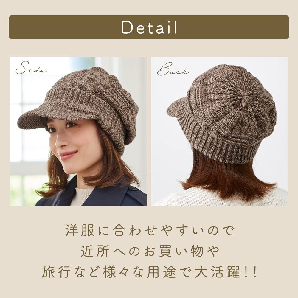 【耳まであったか】ミックス感のある糸でざっくり編まれた、ふんわりシルエットがかわいいツバ付きのキャスケット風ニット帽。いつもの洋服にも合わせやすいデザインでおしゃれに寒さ対策!