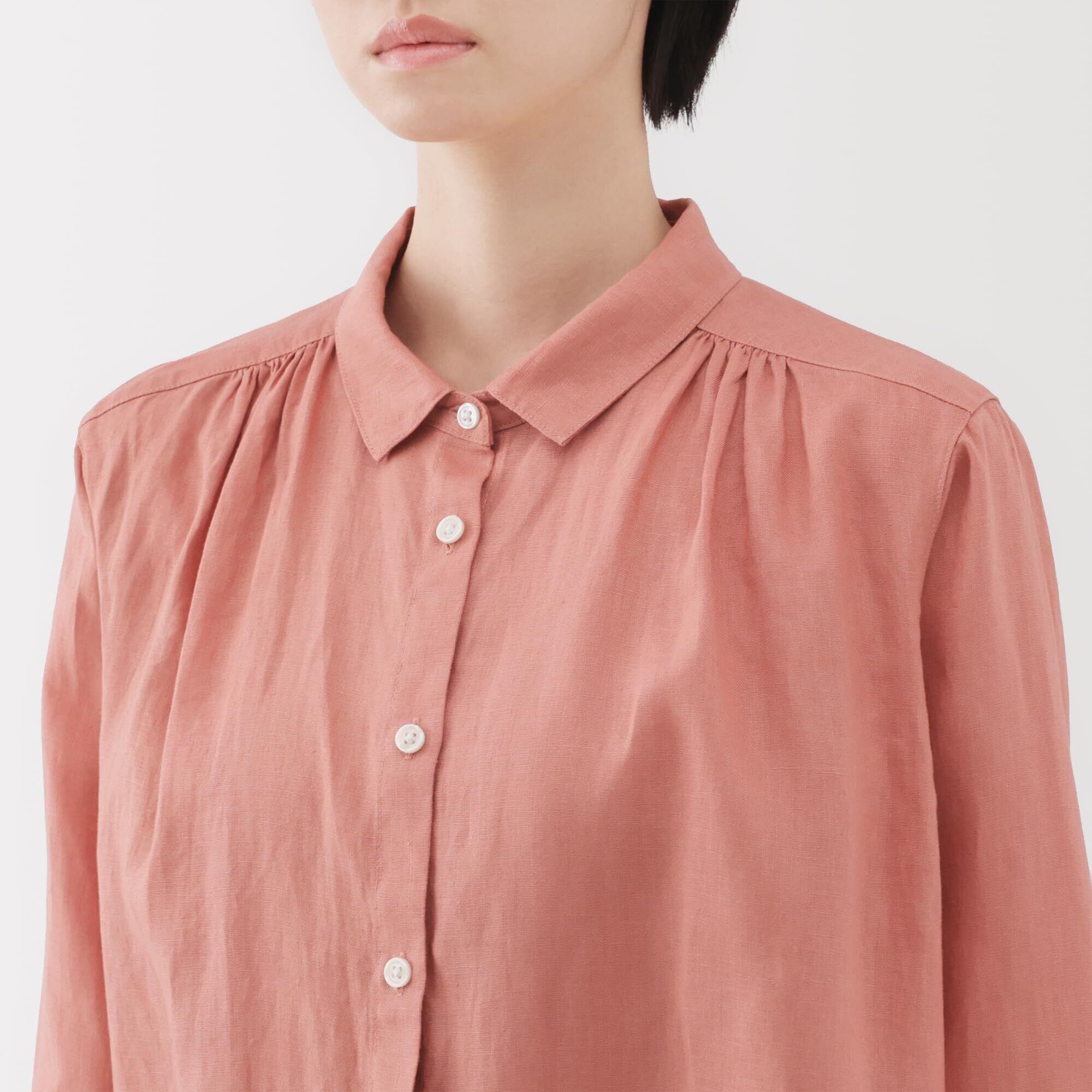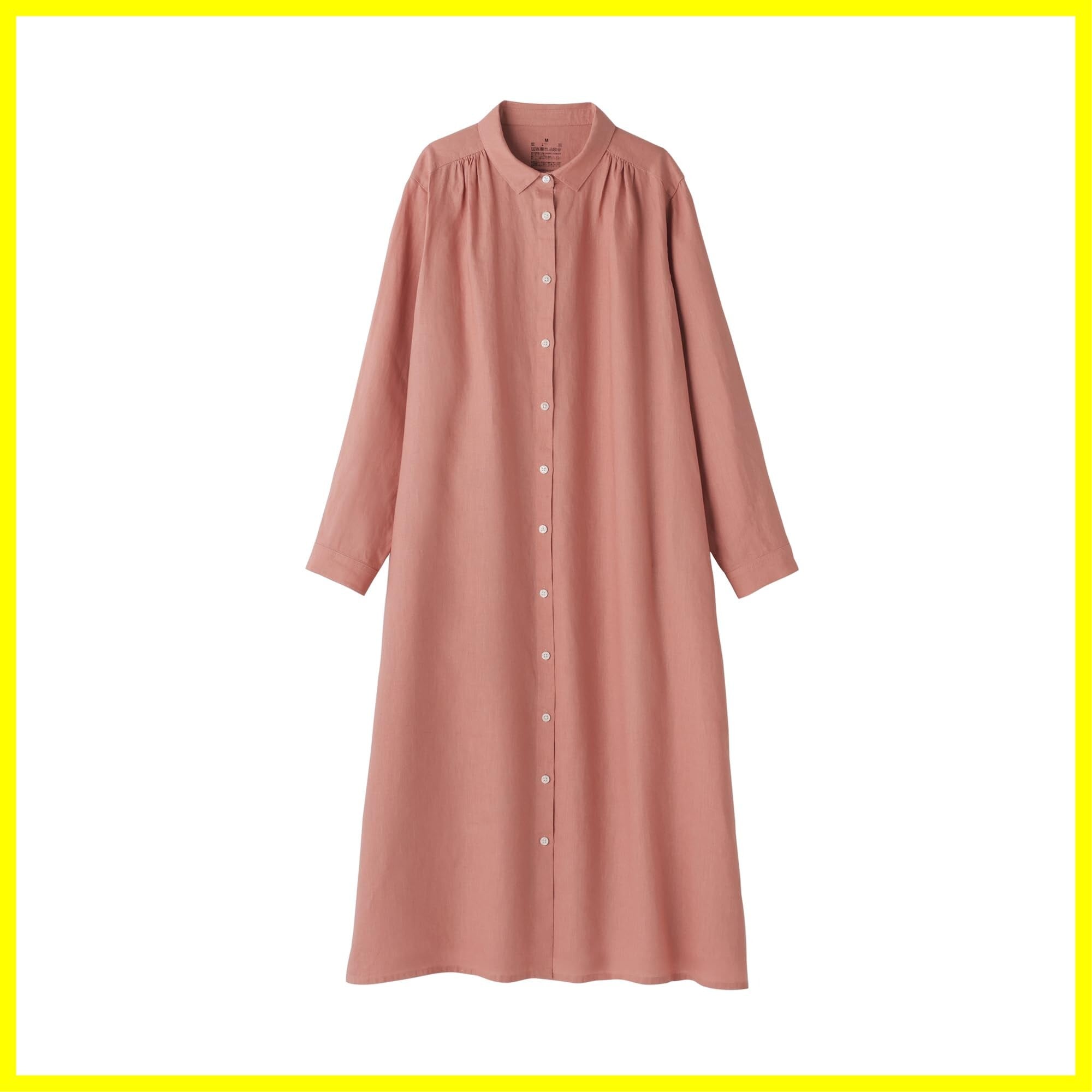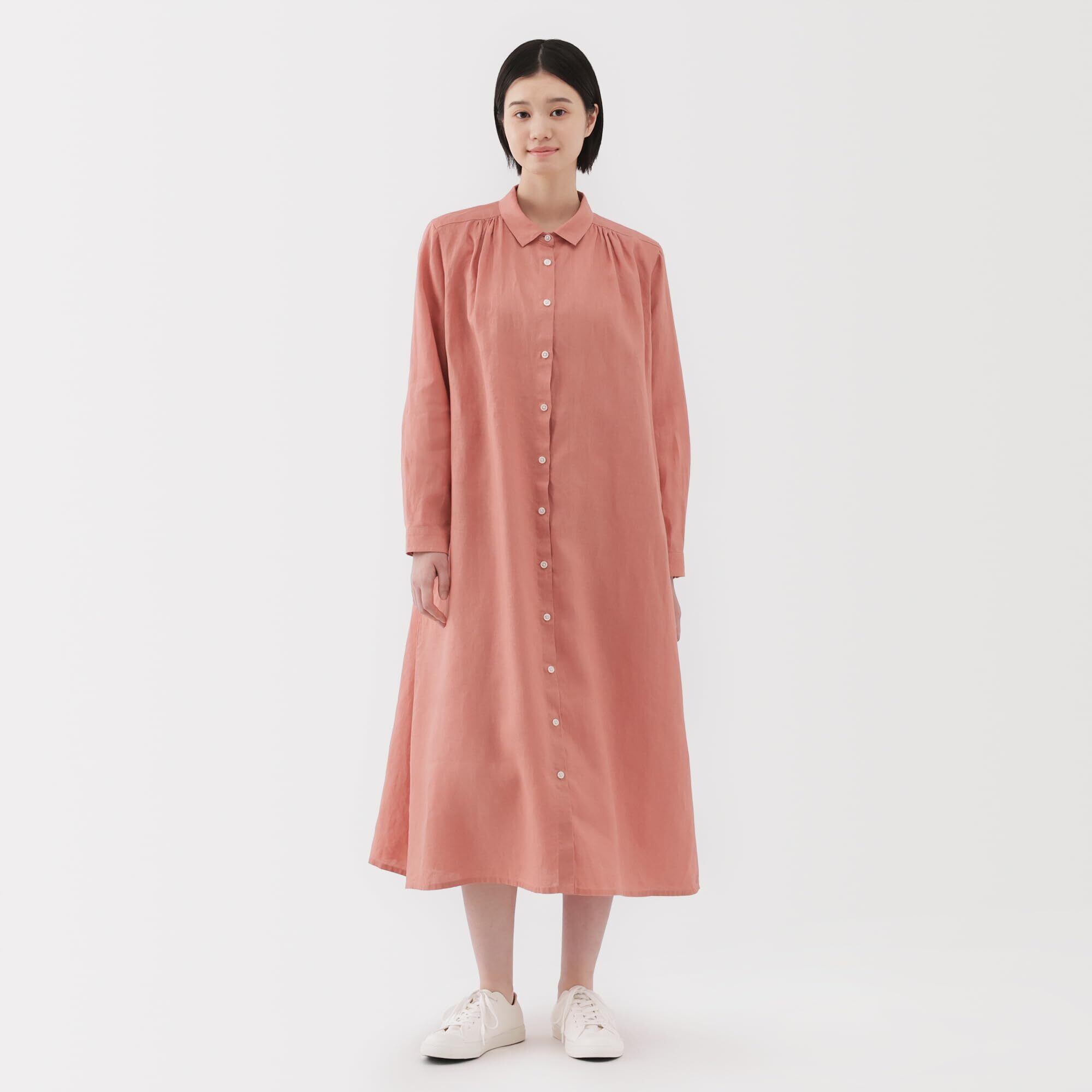 無印良品 ワンピース婦人 リネン 洗いざらし長袖シャツワンピースレディース