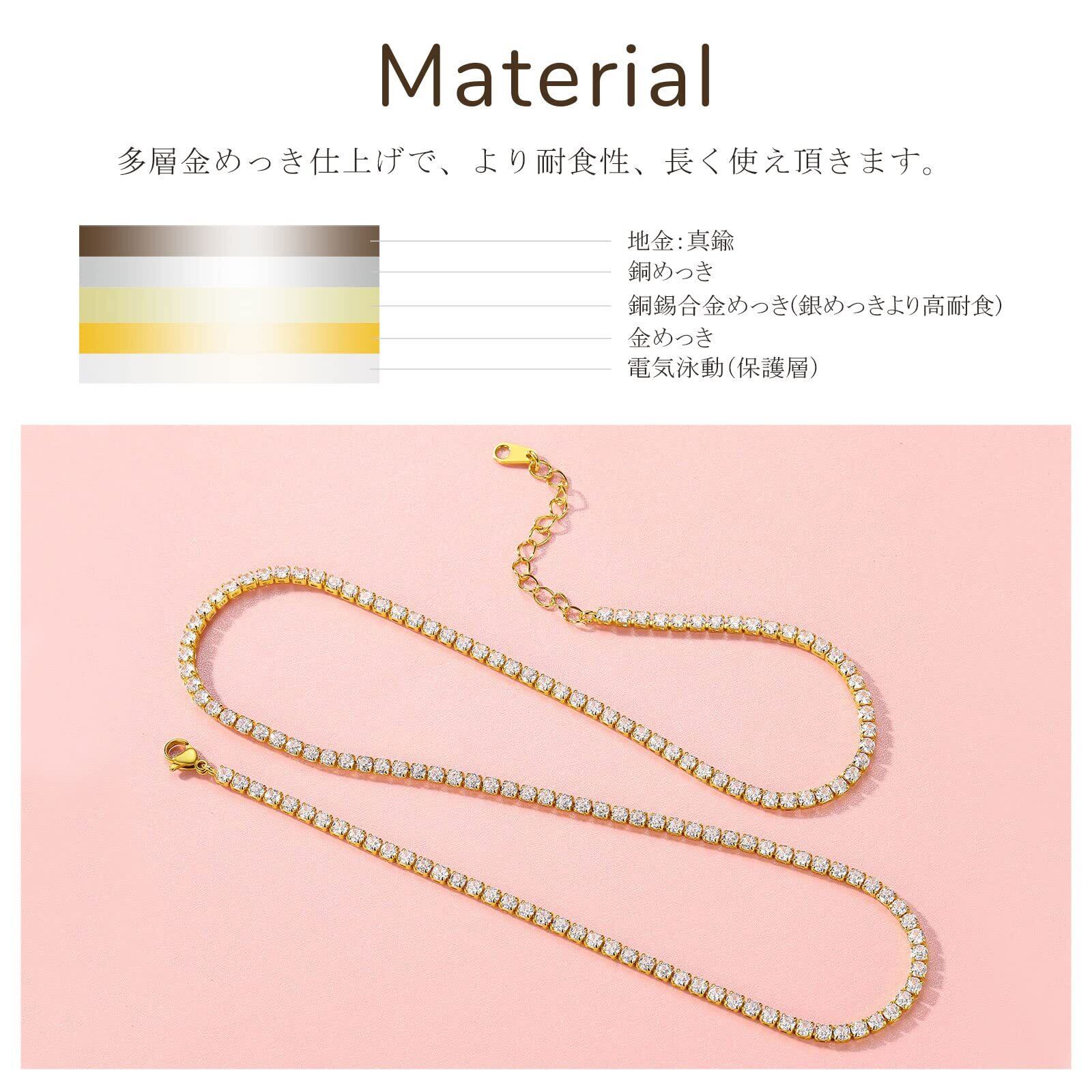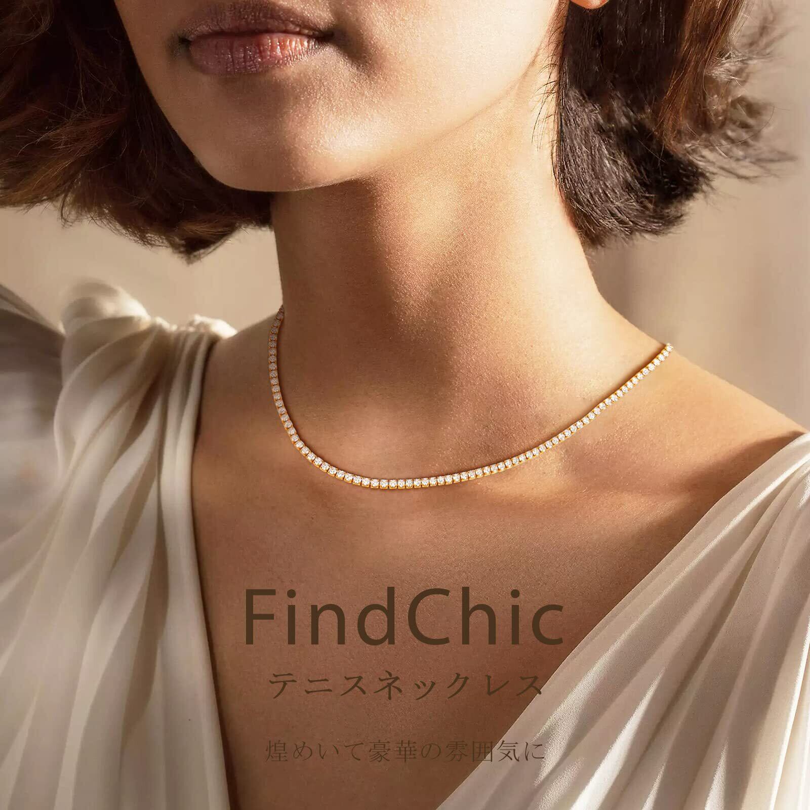FindChic テニスネックレス レディース キュービックジルコニア ゴールド 真鍮 パーティー アクセサリー プレゼント 女性 65cm