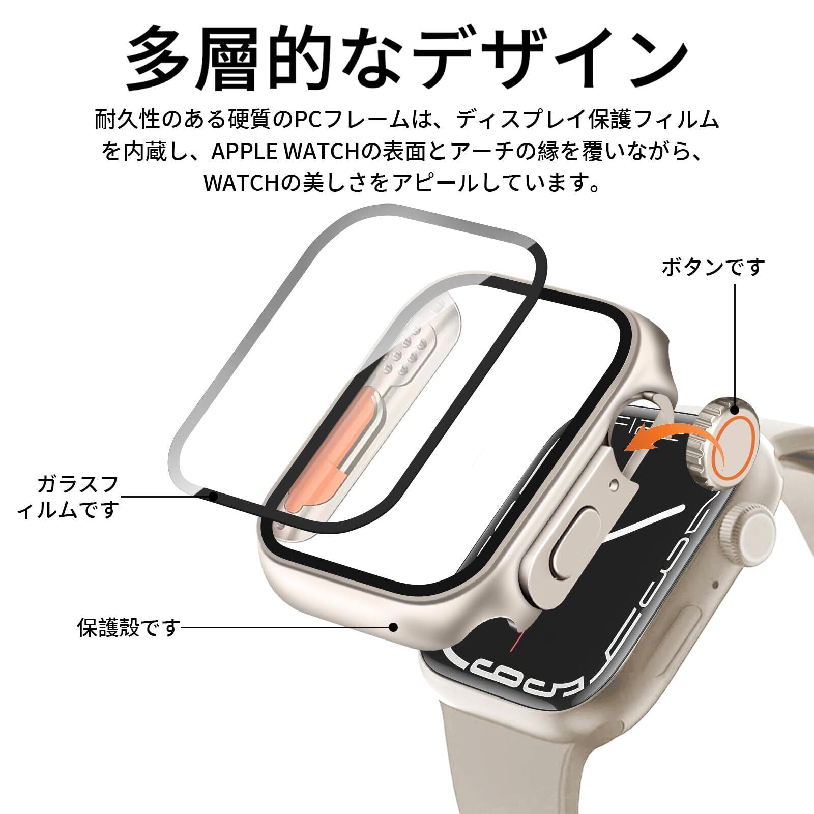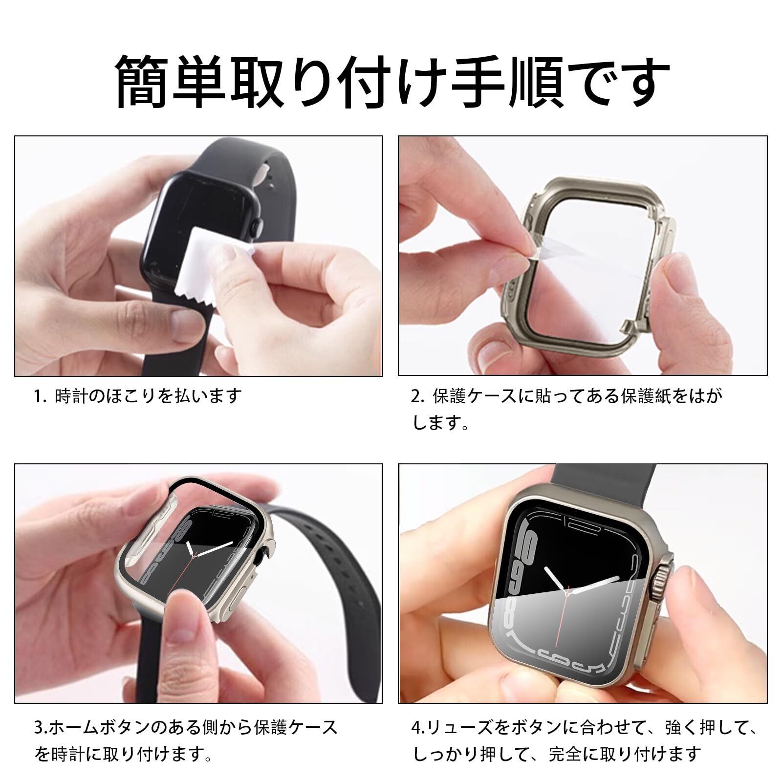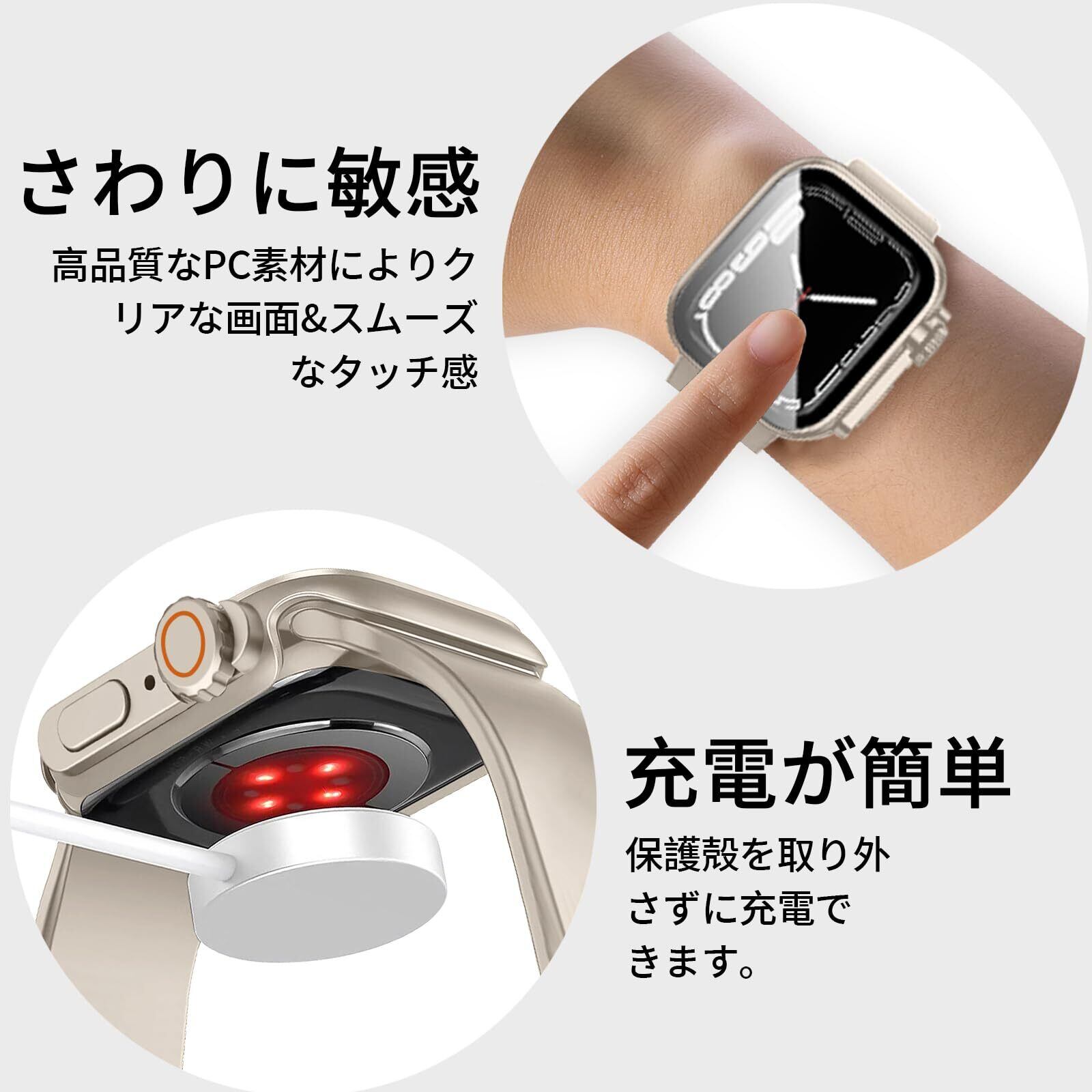 【49mmには対応していません】 ユニークな外観デザイン。最新モデルのように、強化ガラススクリーンプロテクター付きのケースで、素早く簡単に取り付けられます。時計バンドを取り外す必要はありません。直接取り付けたり取り外したりできます。