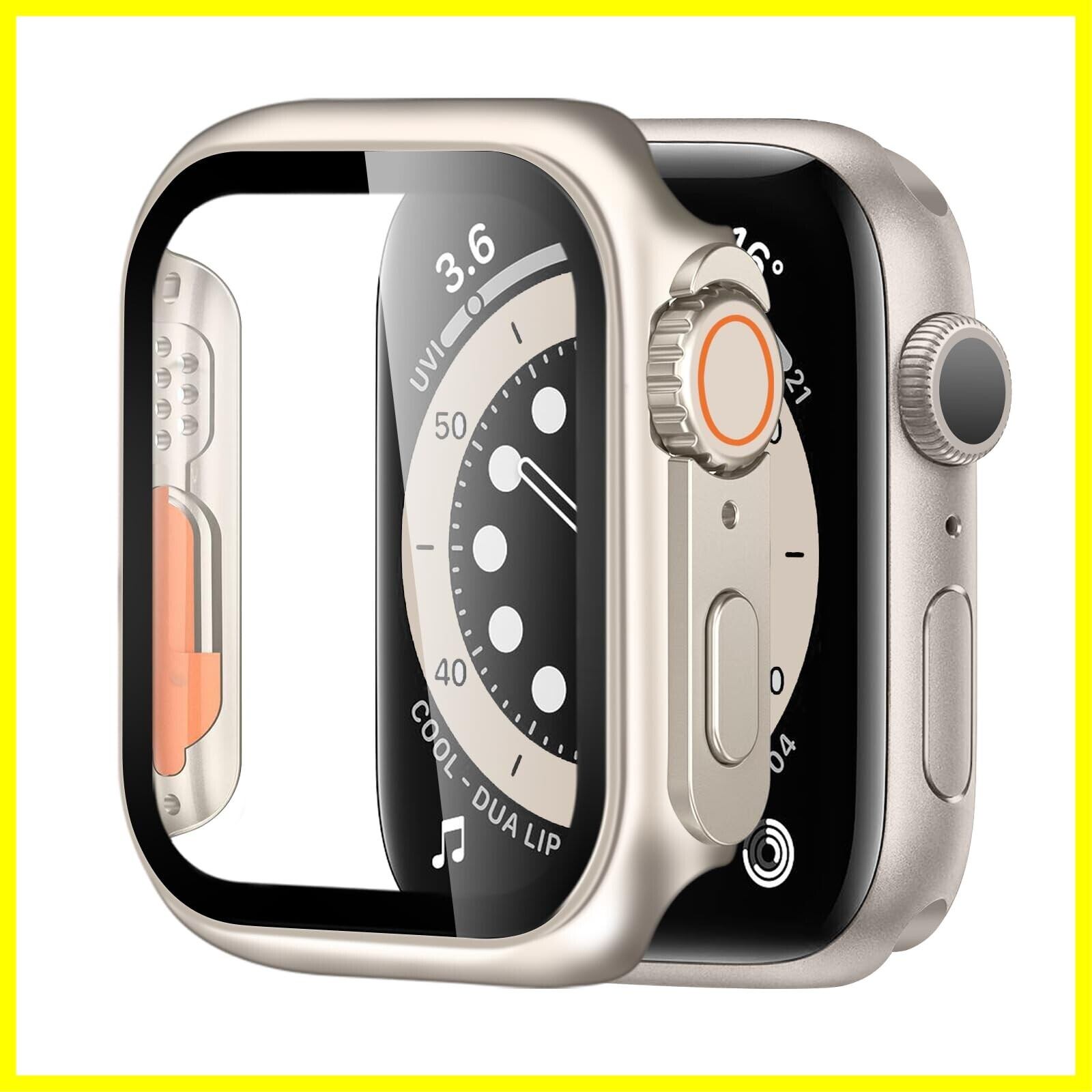 BELIYO Apple Watch ケース 45mm 対応 アップルウォッチ カバー 一体型 Apple Watch Ultra風ケース Apple Watch カバー 全面保護 二重構造 アップルウォッチ ケース PC素材 日本旭硝子材 軽量 強化ガラス Apple Watch Series 9/8/7 アップルウォッチ9/8/7 対応(45mm,チタンゴールド)