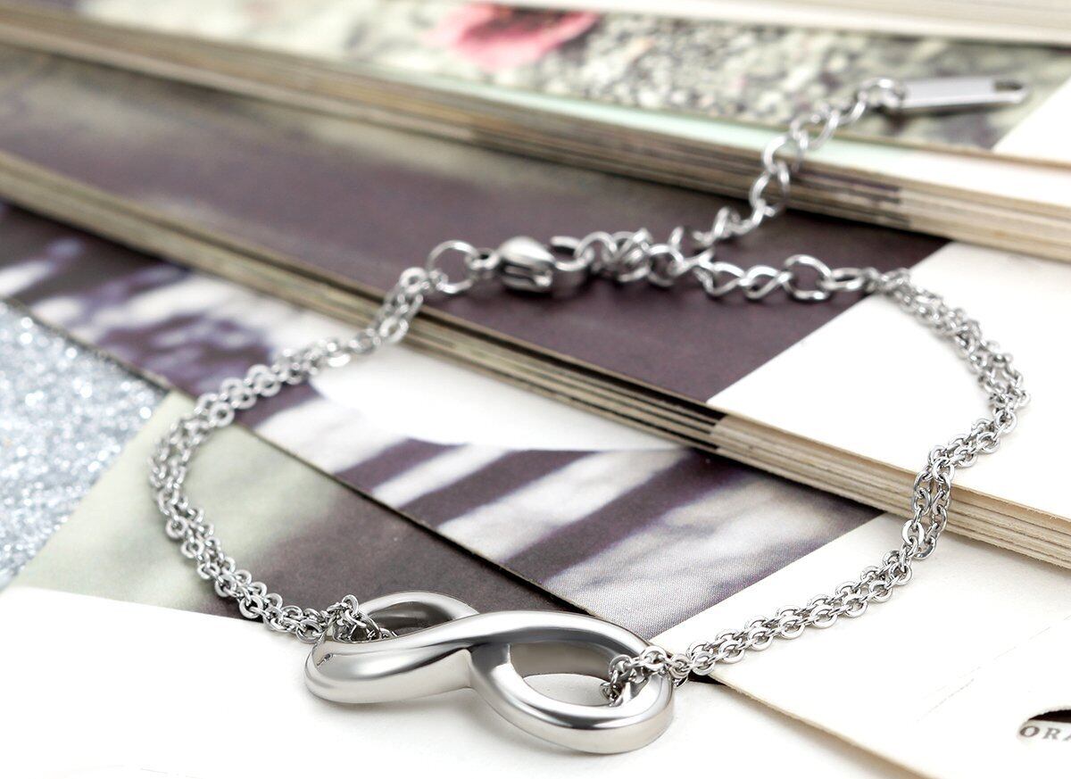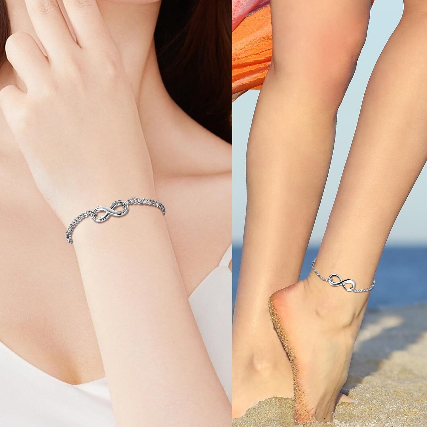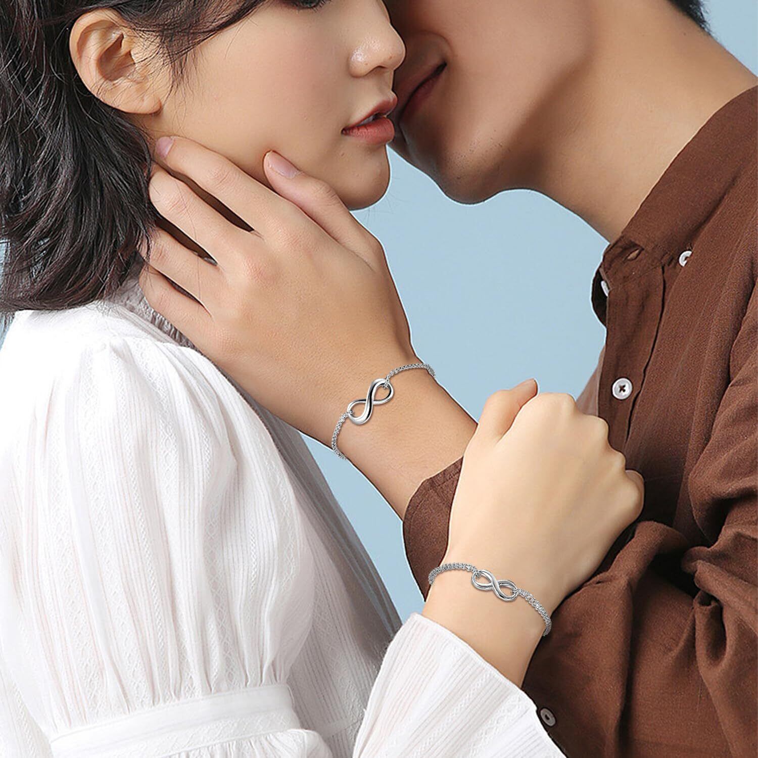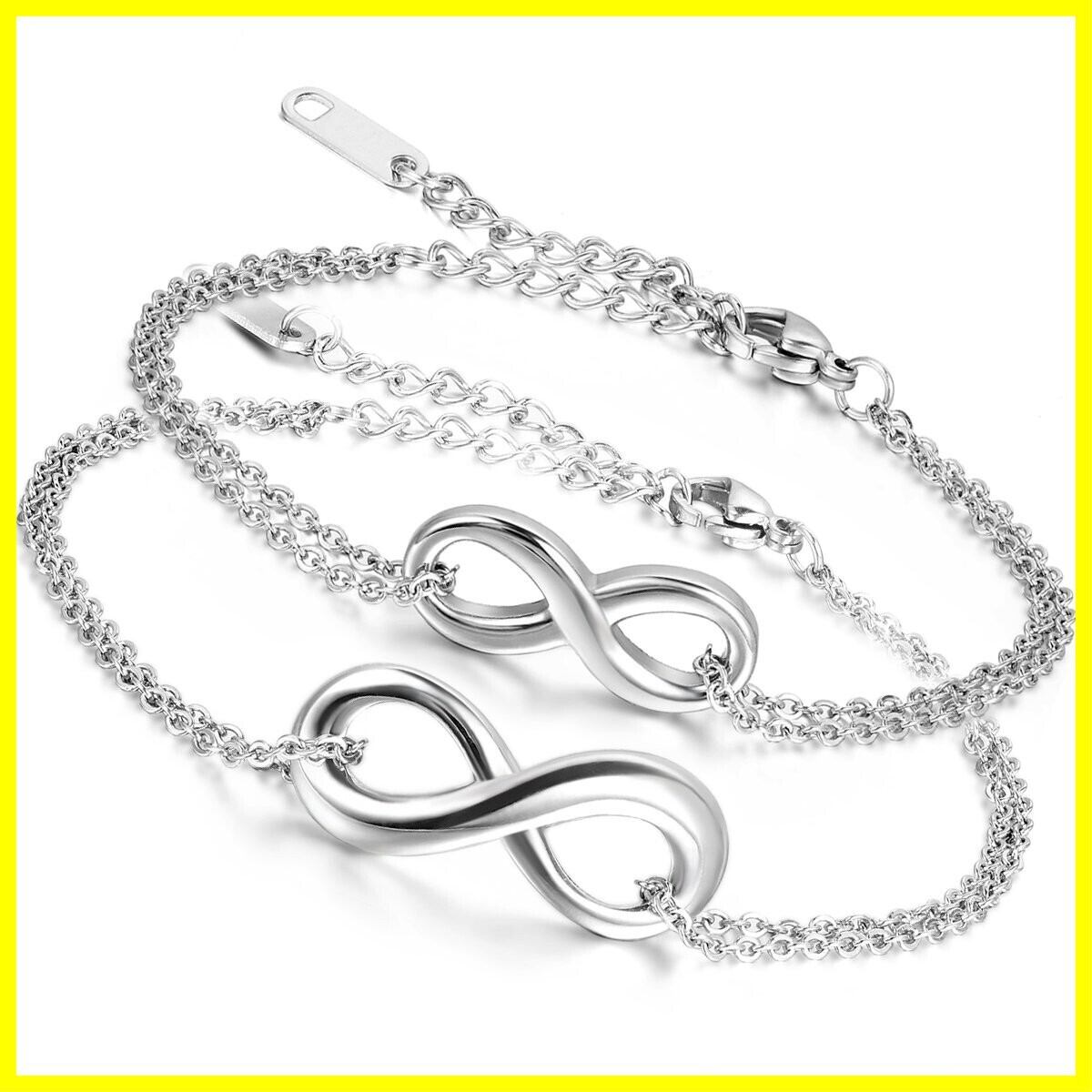 カップル ブレスレット お揃い ステンレス アンクレット: 無限大 8字 シルバー 愛の証 レディース バングル 手脚も適合 シンプル ジュエリー 可愛い クリスマス バレンタインデー-プレゼント 誕生日 記念日 2個セット ケース付き