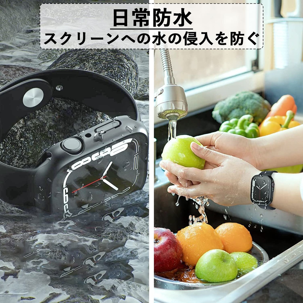 【簡単装着&バンド着脱不要】ワンタッチのスナップオン設計でバンドを外さずそのまま装着。ケースをつけたまま充電・ボタン操作・通話も可能、日常使いでもストレスフリー。さらに指紋防止コーティングで液晶もキレイをキープ。