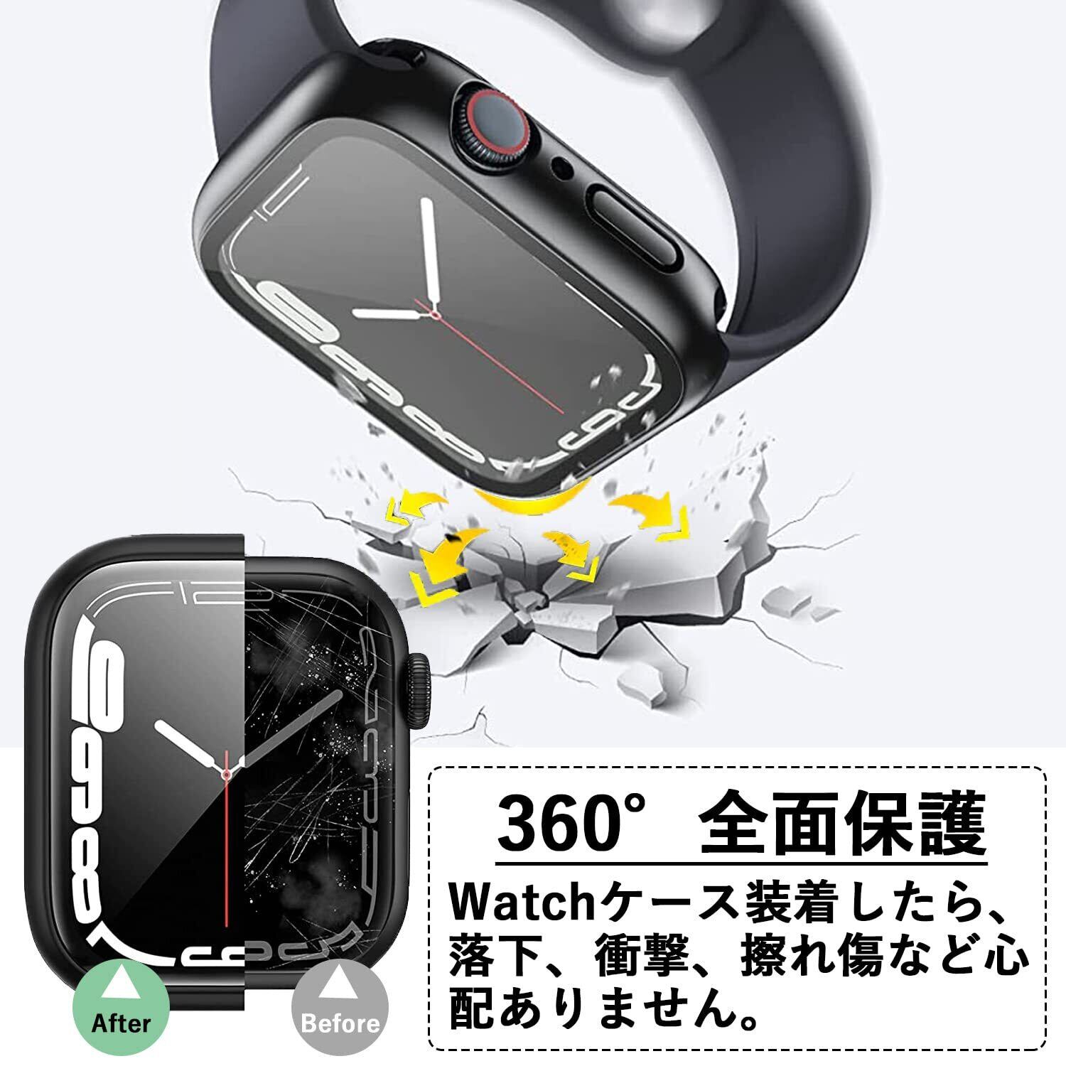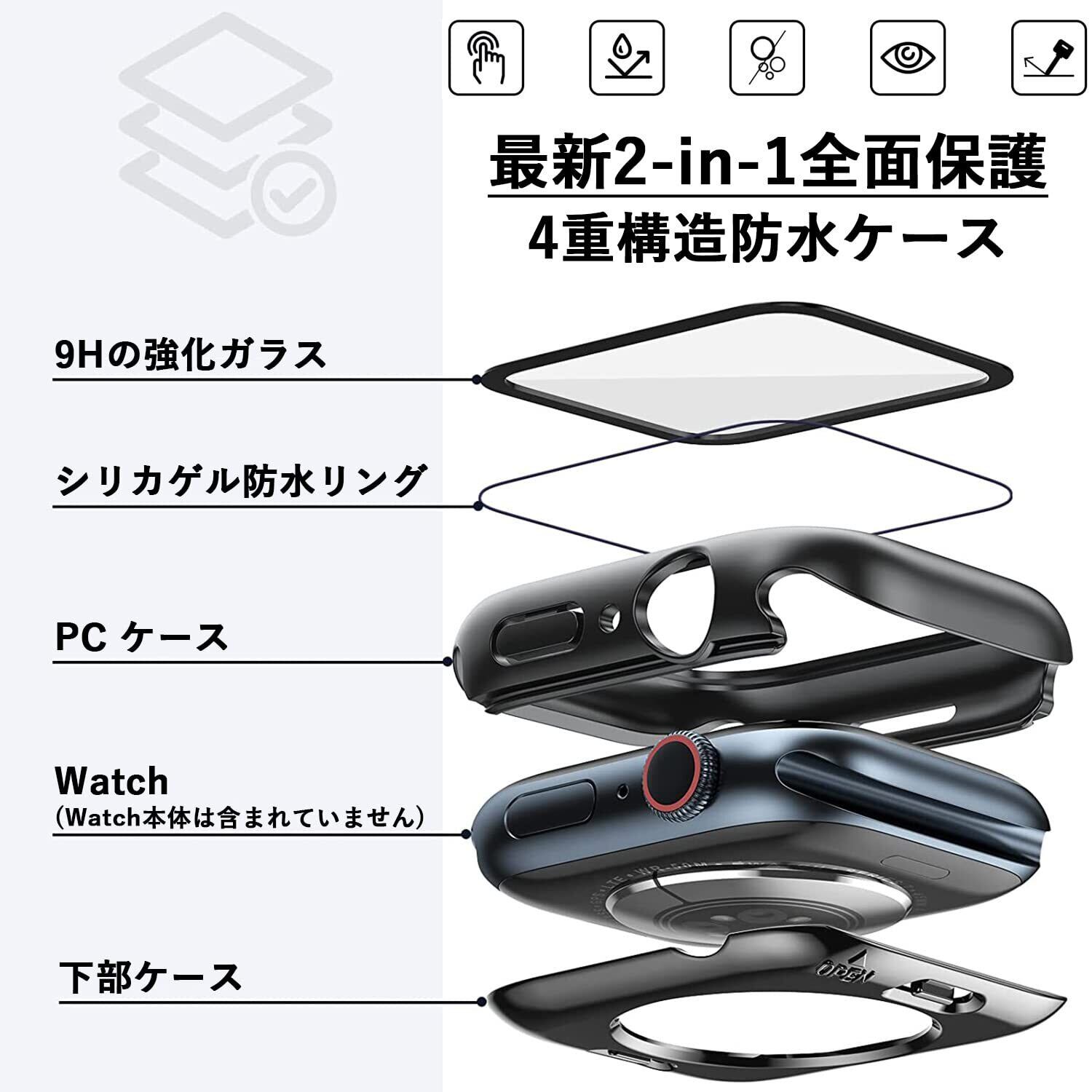【9H強化ガラス+PC素材の全面保護】液晶には傷に強い9H強化ガラス、側面は耐衝撃PC素材を採用。うっかり落としても衝撃をしっかり吸収し、大切なアップルウォッチを傷や衝撃からしっかりガード。