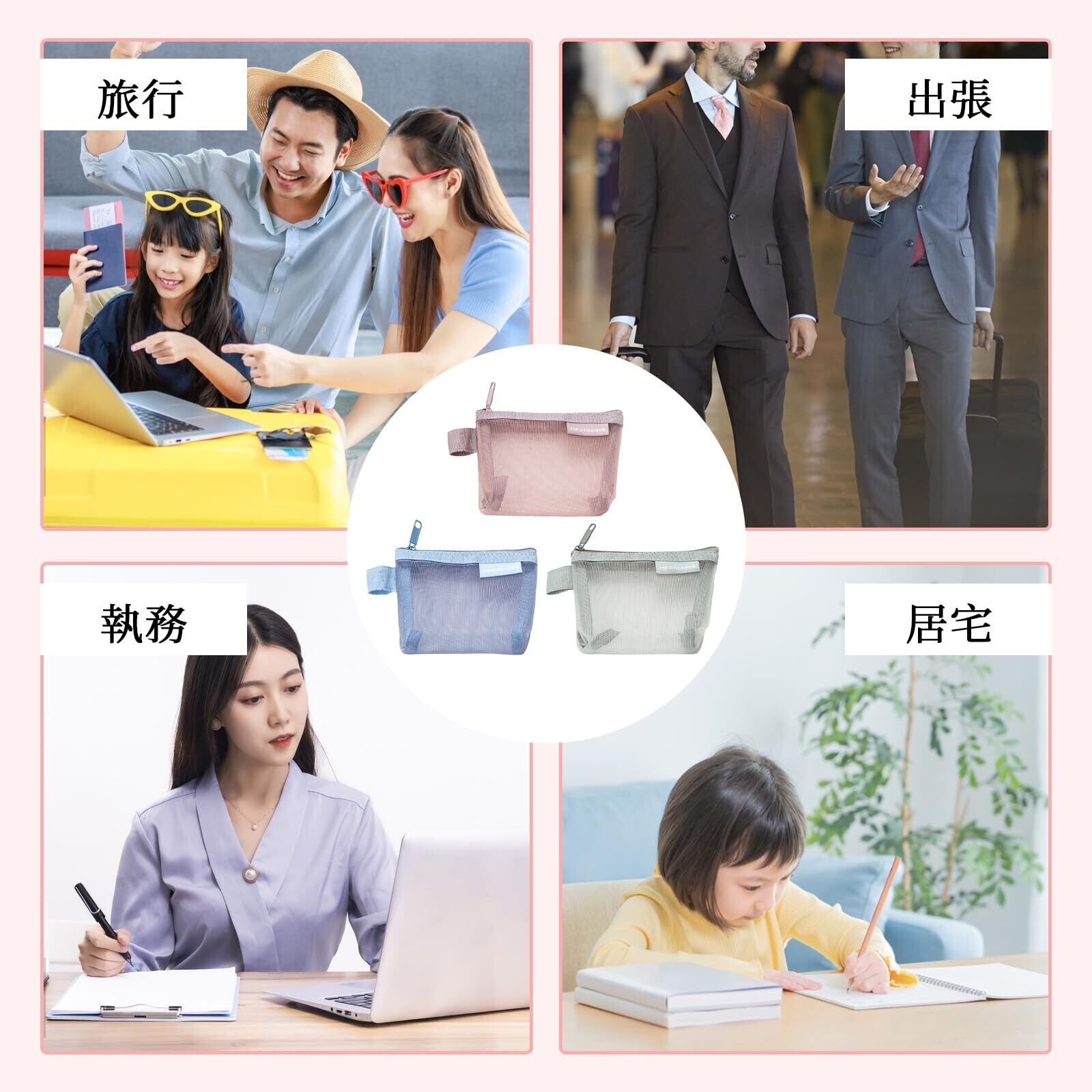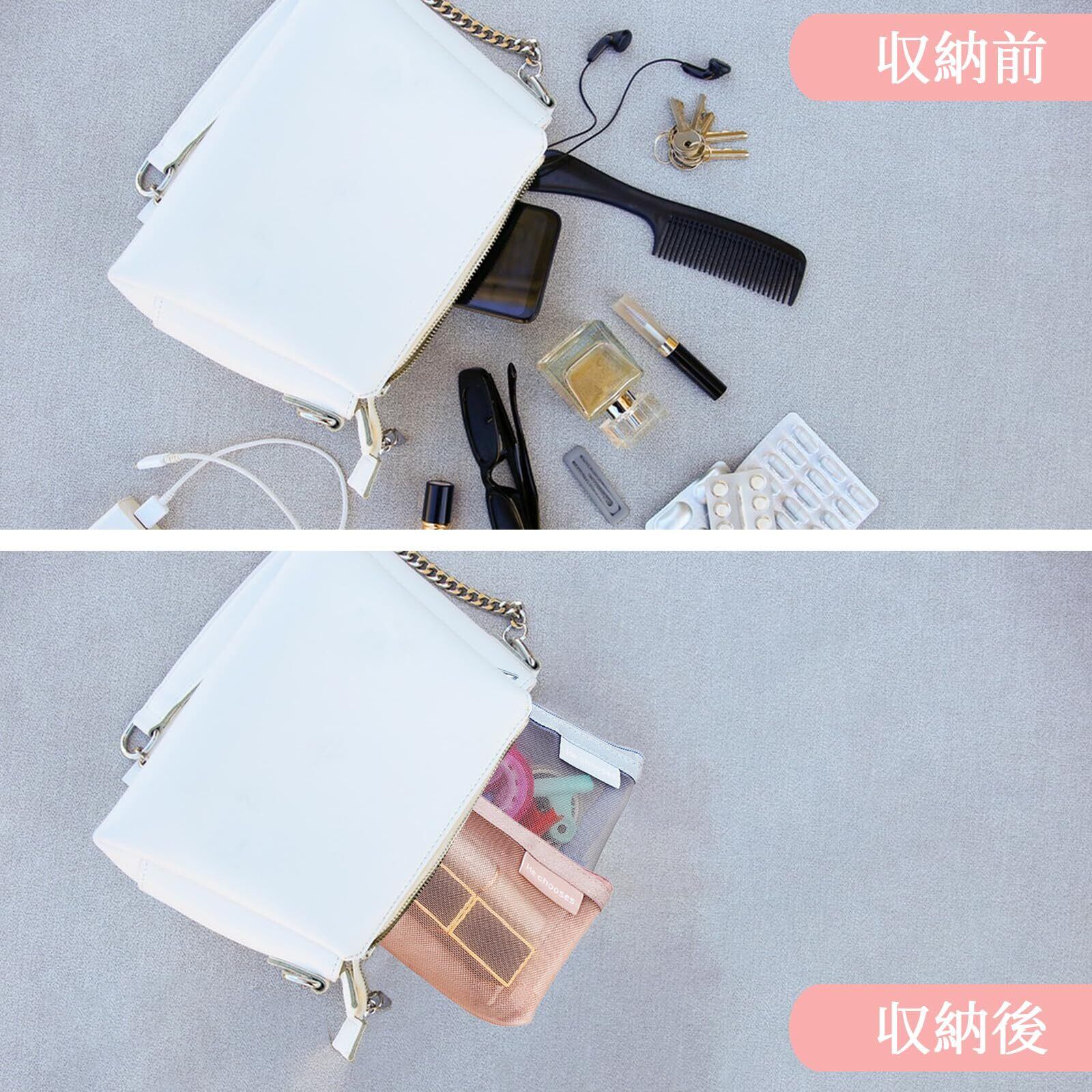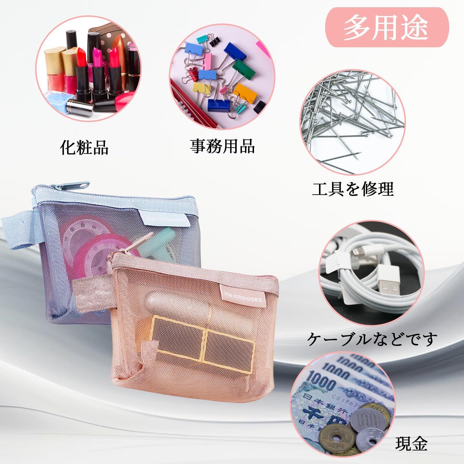 【製品の素材】このミニポーチは、高品質のナイロンメッシュで作られており、持ち運びに便利で耐久性があります。それは簡単にメッシュバッグを通してあなたのものを見ることができ、簡単に見つけることができ、何かを探す時間を節約するのに役立ちます。