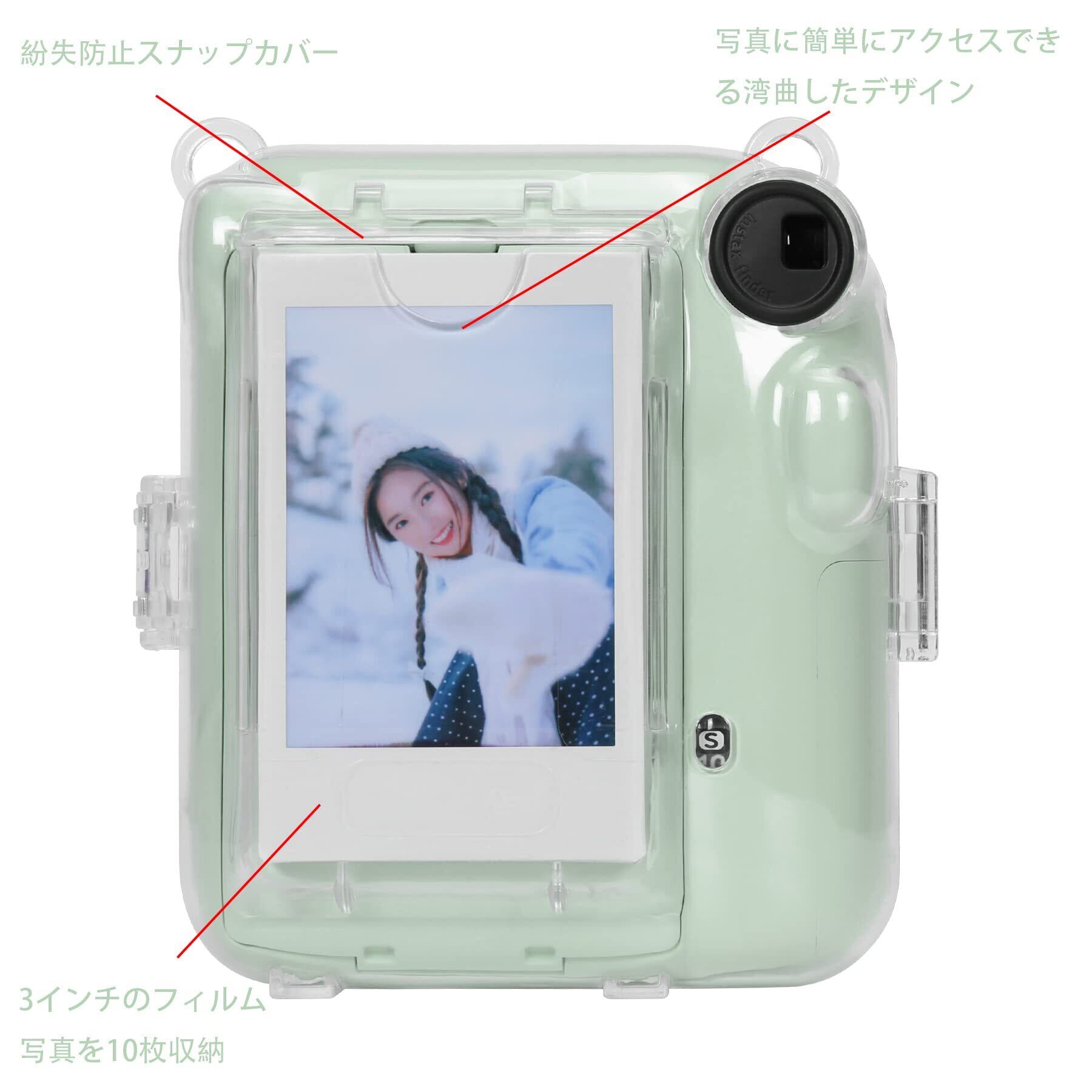 【特長】フィルム収納袋付きで、チェキ instax mini 12 フィルムを10本収納できます。 ショルダーストラップもとても綺麗で調節可能です.外出時はいつも身につけて、首から下げて、落ちる心配もありません.使いやすくて便利です.