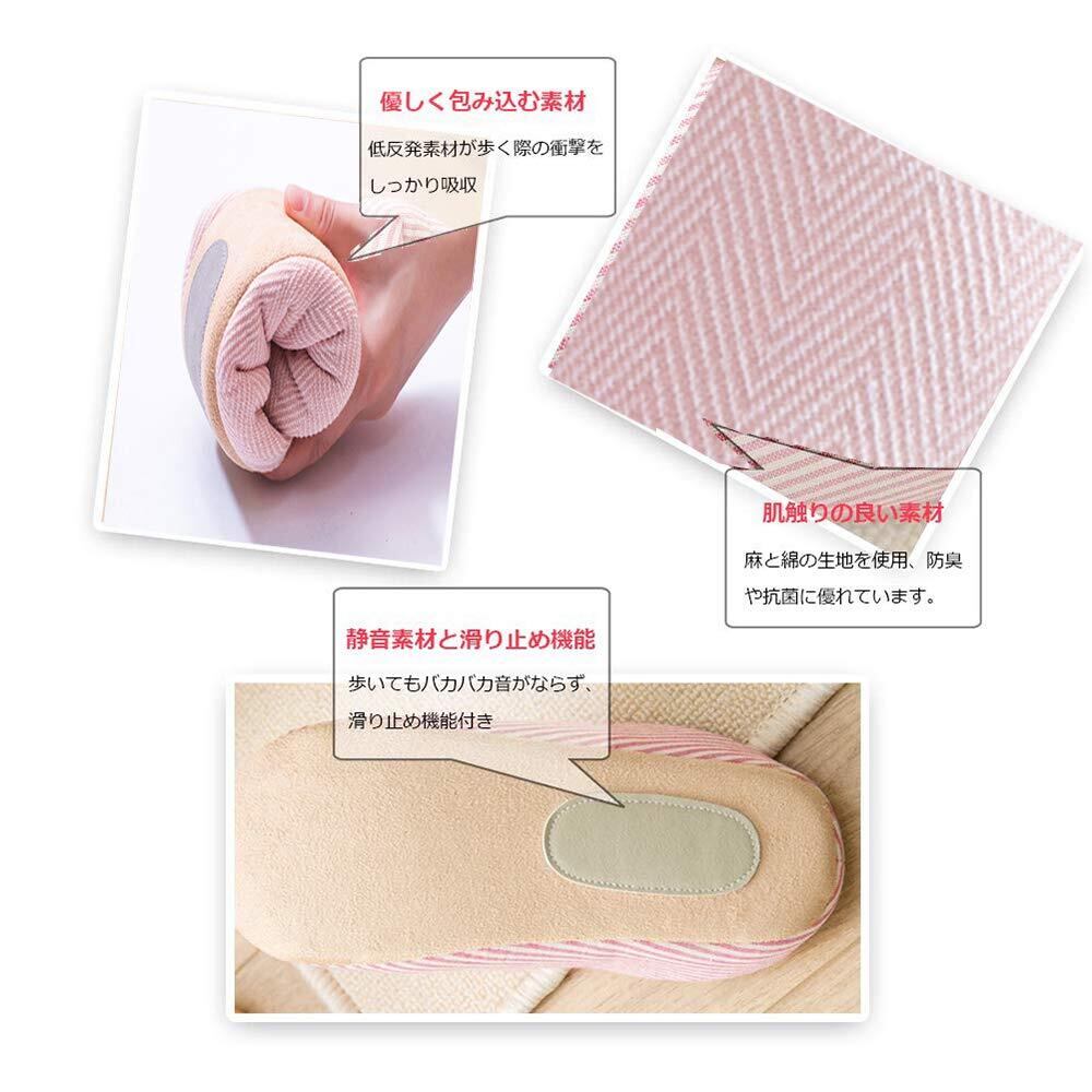 【静音&滑り止め】歩く時にペタペタ音が出なくて室内履きにぴったり静音スリッパ。靴底には、スクラブPUを採用され、滑り止めと静音効果抜群。底面に弾力性を持っていって、もっちり柔らかい履き心地が良い室内用スリッパです。素足で履いて気持ちいい肌触り、履きやすいスリッパです。
