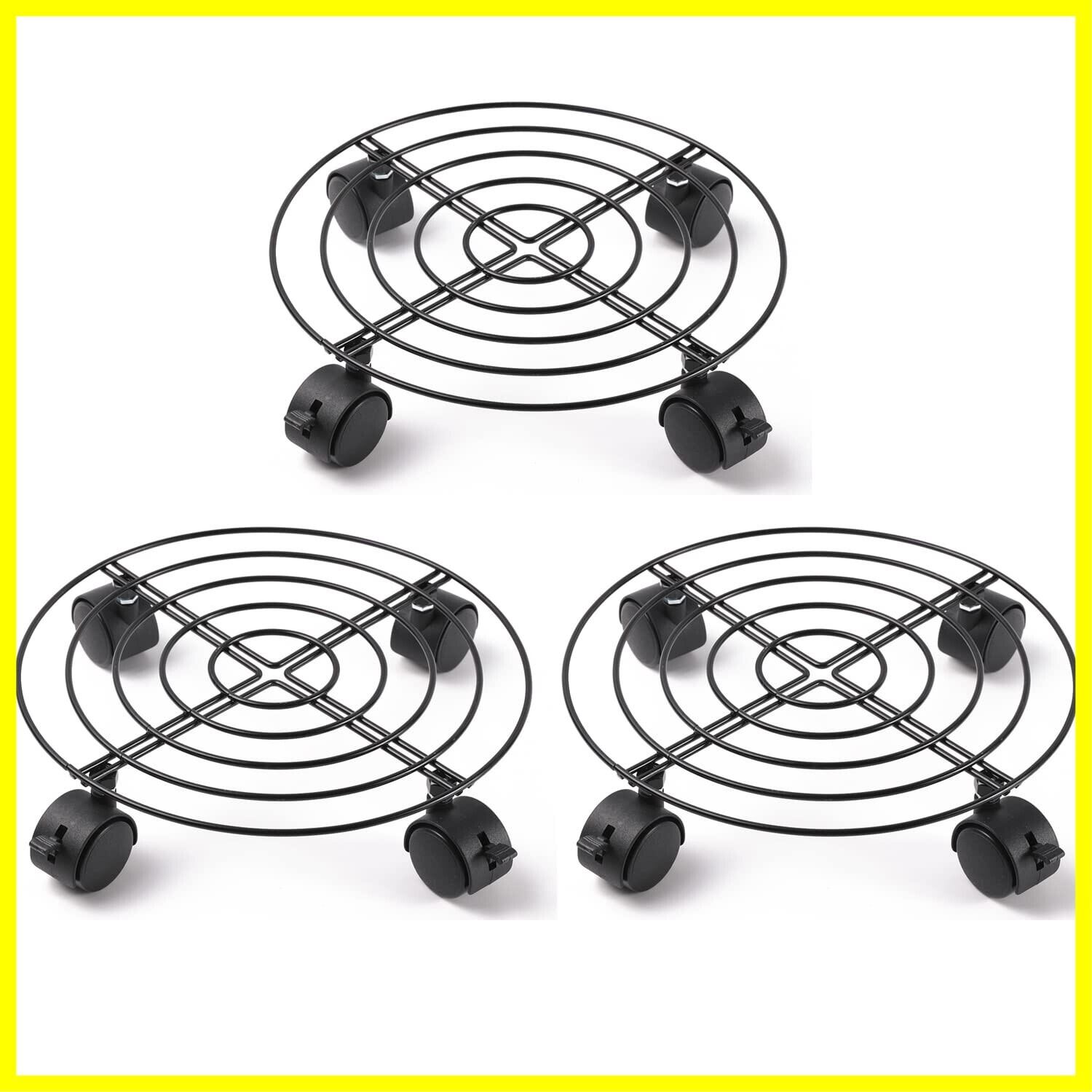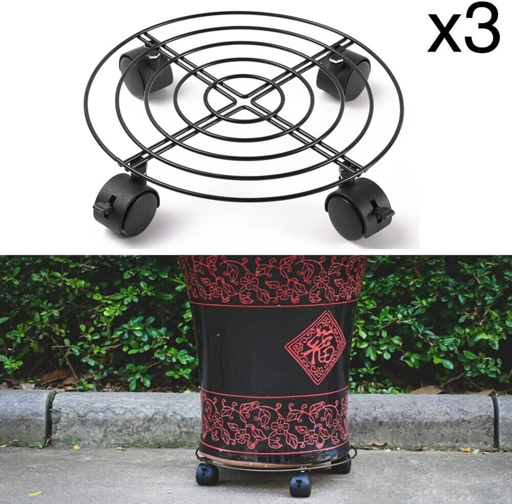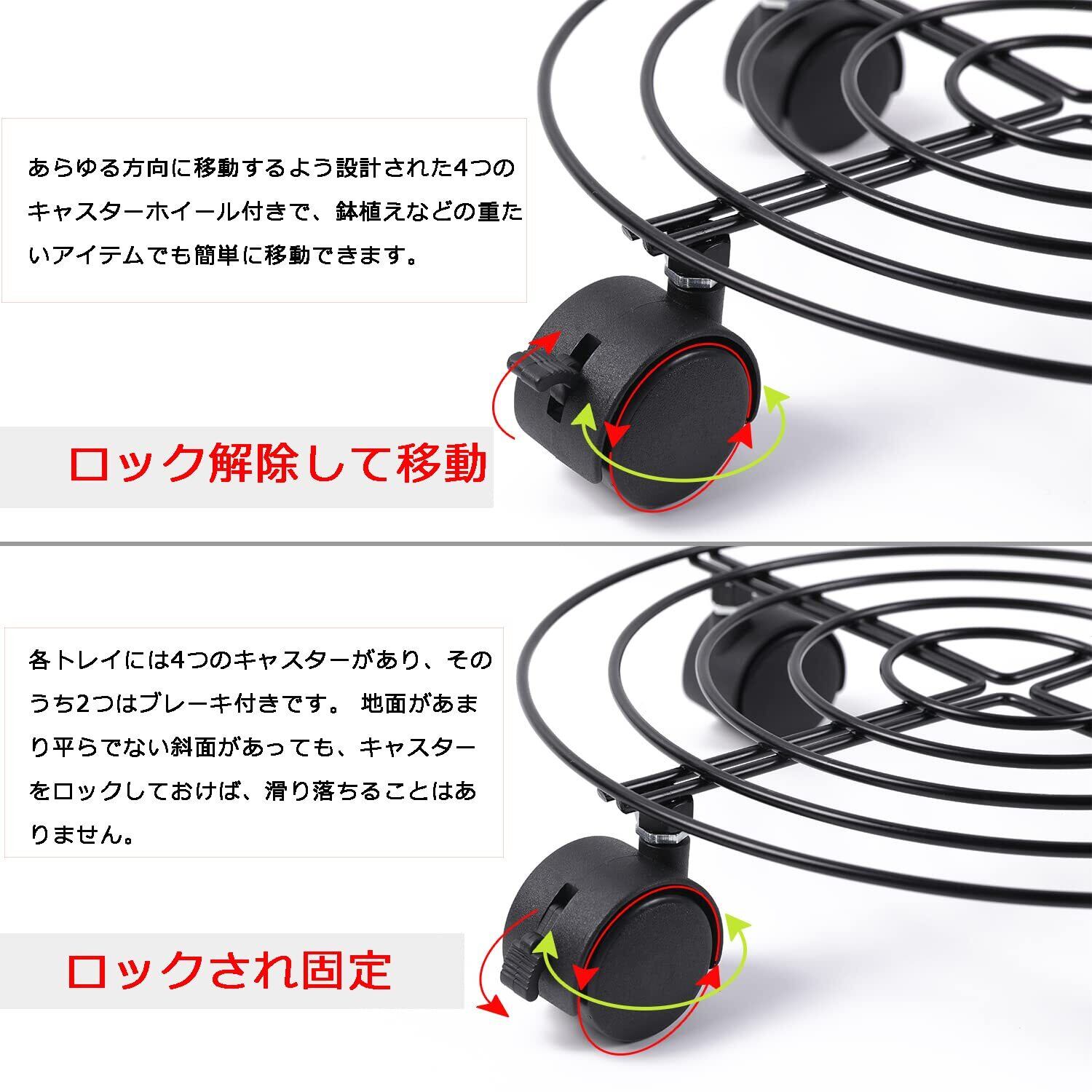ETRAVEL 植木鉢台 鉢置台 鉢受プレート キャスター付き ストッパー機能付 花台 金属製鉢置台 移動 掃除楽に 屋内 屋外兼用 直径27cm ブラック 3個 (ブレーキ付)