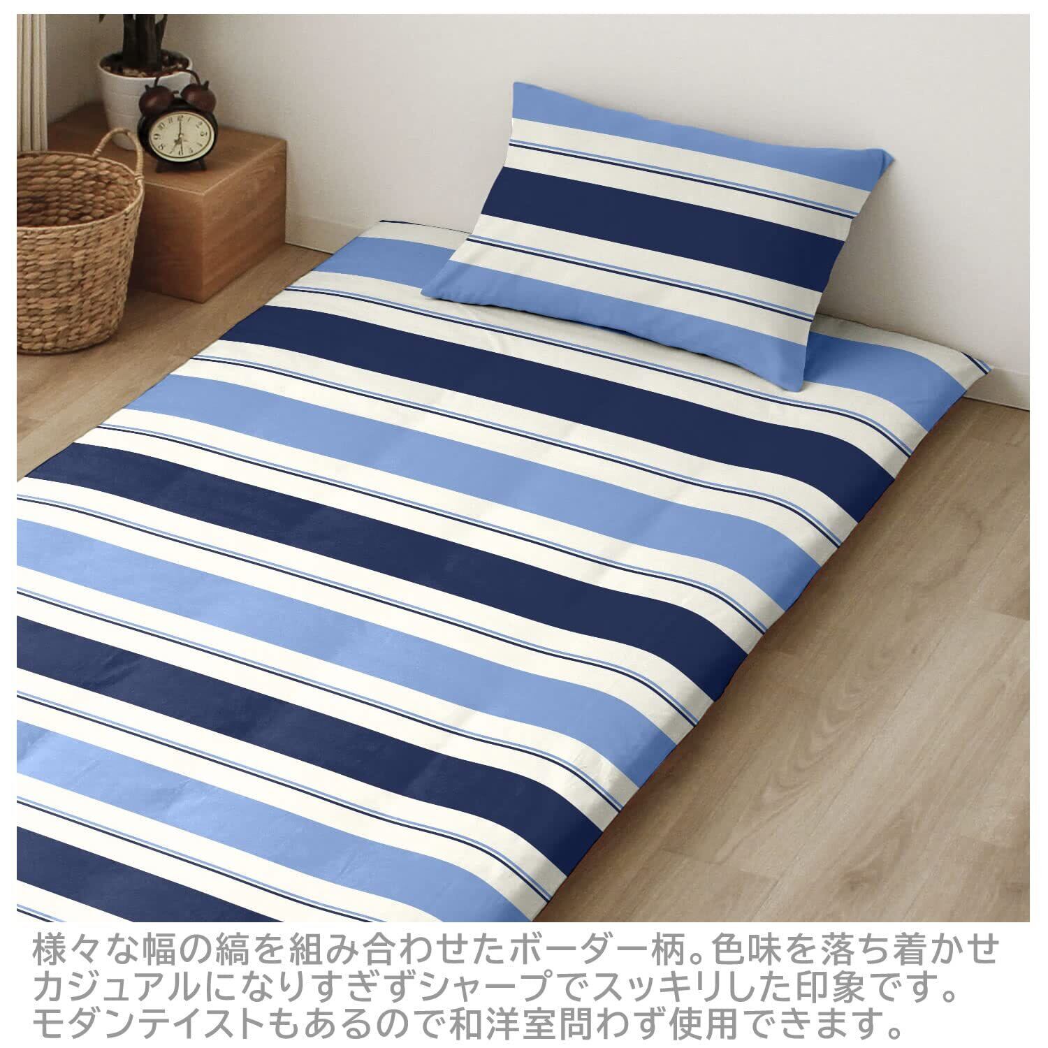 メリーナイト 敷き布団カバー 「ダブルボーダー」 ネイビー シングルロング 約105×215cm L字ファスナー 大きく開く ふとんが入れやすい 洗える シワになりにくい FF13112-72