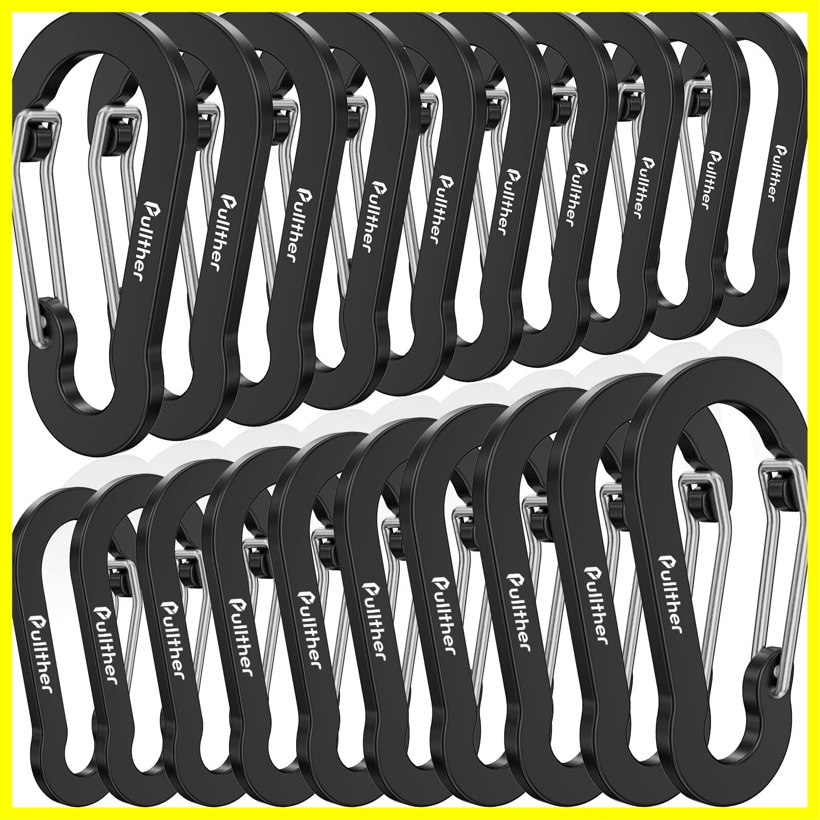 Pullther カラビナ 小型 5cm 超軽量 錆びない アルミ合金 アウトドア ガイロープ カラビナ 釣り 20個