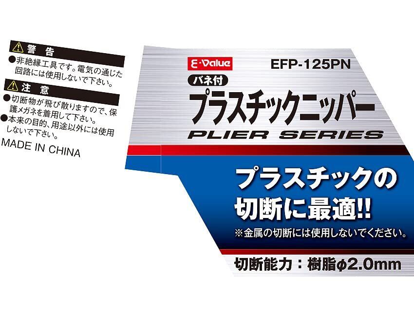 イーバリュー(E-Value) プラスチックニッパー バネ付 125mm EFP-125PN