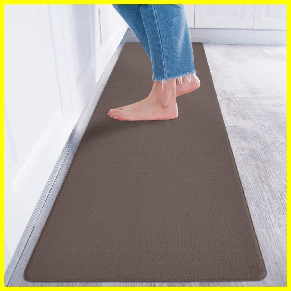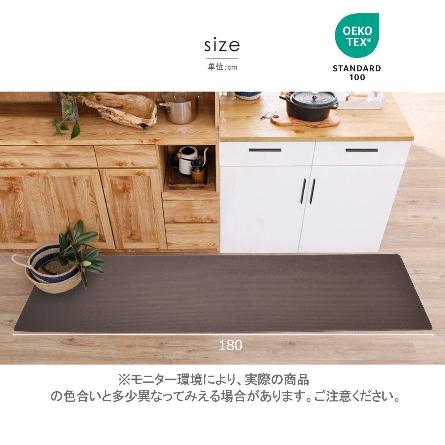 Baibu Home キッチンマット 拭ける 洗濯いらず 低反発 クッション 8mm 踏み心地いい ポリ塩化ビニール ずれない 台所 マット はっ水 防汚 180cm ブラウン