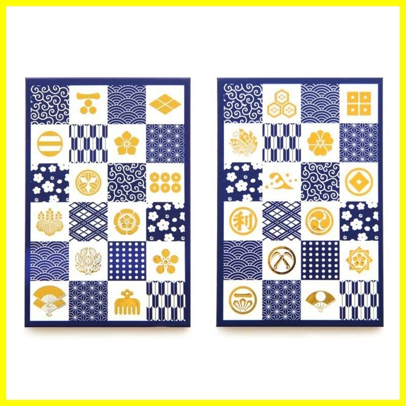ポケット付き御朱印帳 小紋×家紋 180×120mm 40ポケット 1冊 (紺)