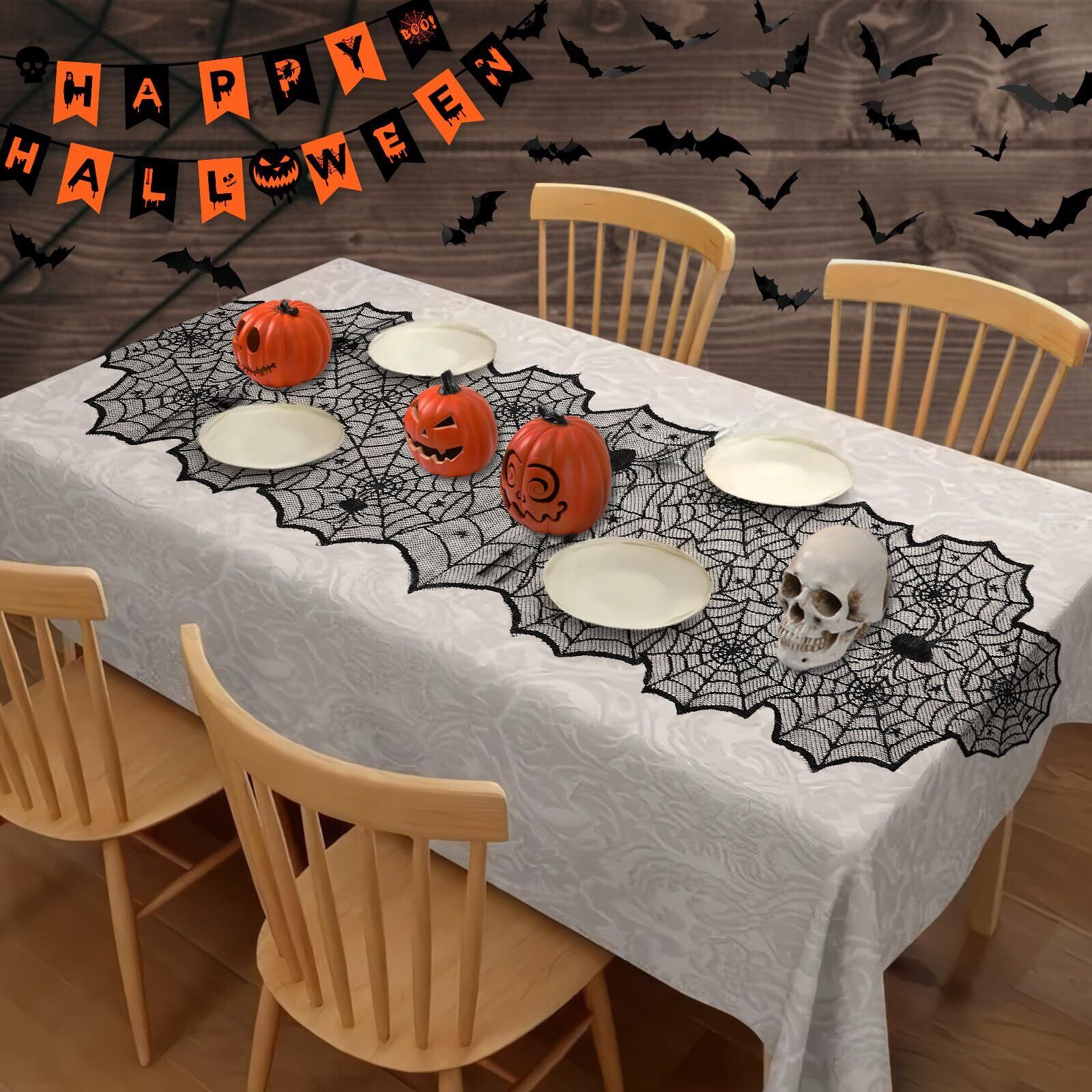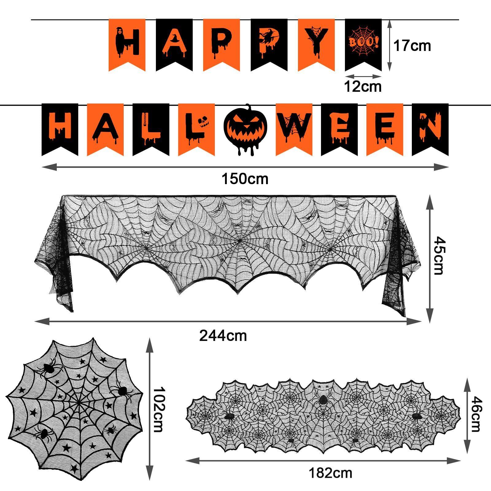【雰囲気満々のデザイン】これらのテーブルクロスは黒いレース生地を採用し、蜘蛛の巣のようにデザインされました。真っ黒なカラーと不気味な外観で、ハロウィンの雰囲気を盛り上げて、ハロウィン 装飾に欠かせないセットです。