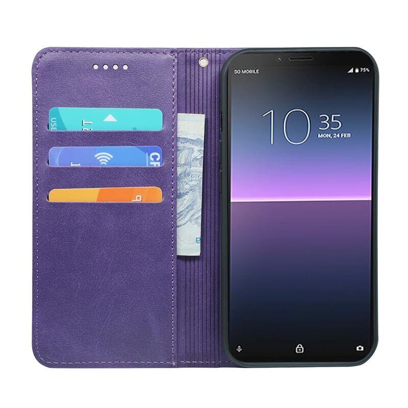 適用 Xperia 10 II ケース 手帳型 適用 エクスぺリア10 II SO-41A SOV43 手帳型ケース カバー 手帳型 PUレザー カード収納 財布型 耐衝撃 ケース マグネット スタンド機能付き 5色(適用 Xperia 10 II SO-41A SOV43 ケース 手帳型) (深い紫)