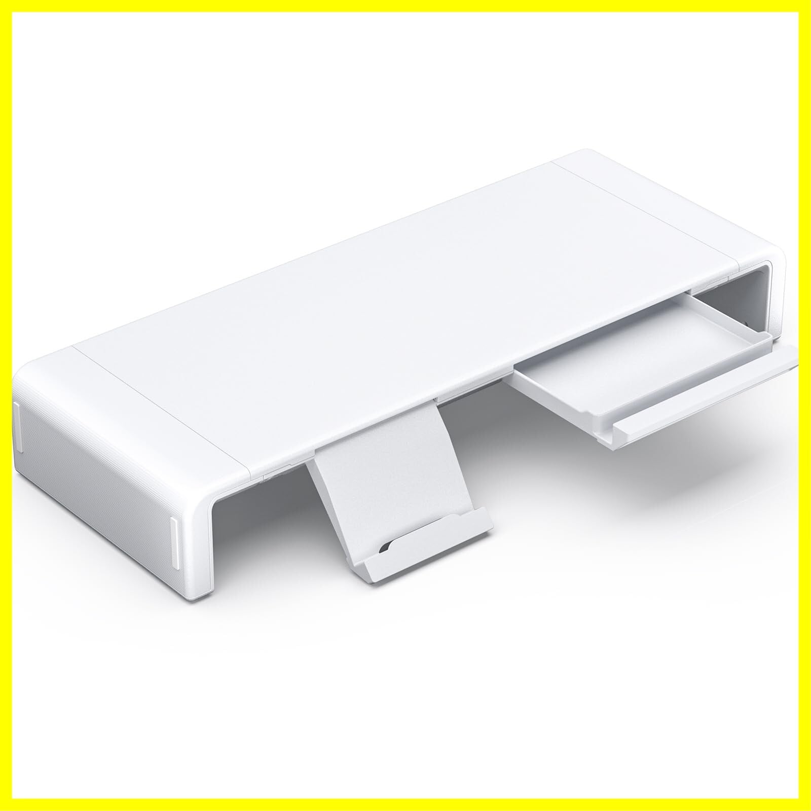 Klearlook モニター台 机上台 耐荷重50kg 折りたたみ式 三段階の幅調整可能 ノートパソコンスタンド モニタースタンド デスクスタンド キーボード収納 引き出し スマホ・タブレットトレー -ホワイト