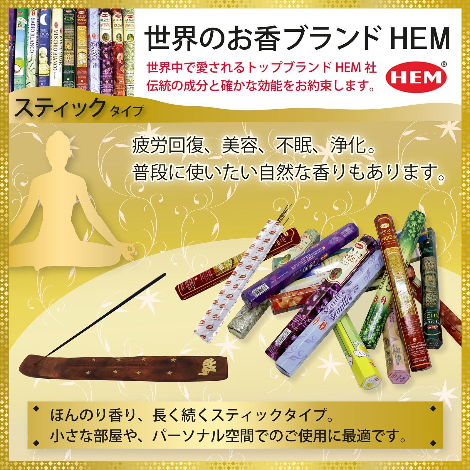 HEM インドお香スティックタイプ 【プレシャス・チャンダン】エコノミーパック (4箱セット) 【お香の世界へようこそセット】