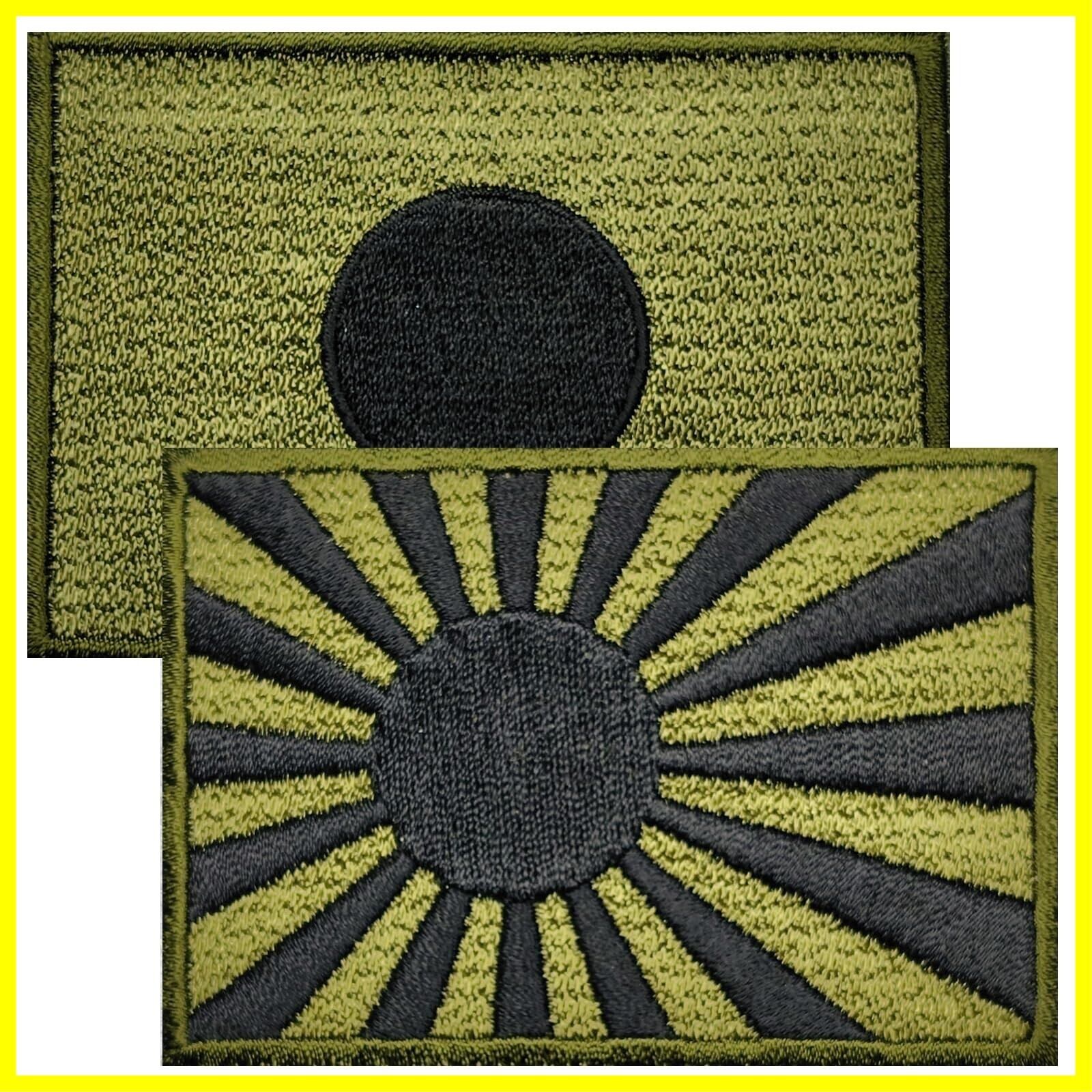ワッペン アイロン接着 サバゲー ミリタリー WappenCook 日本 国旗 刺繍 日の丸 旭日旗 M セット (日の丸 M OD + 旭日旗 M OD)