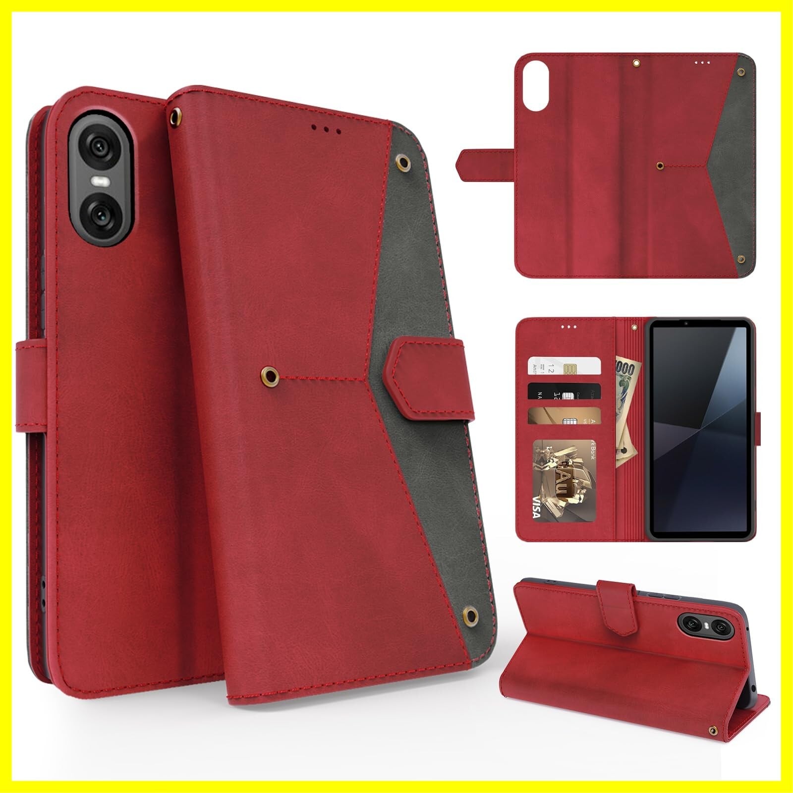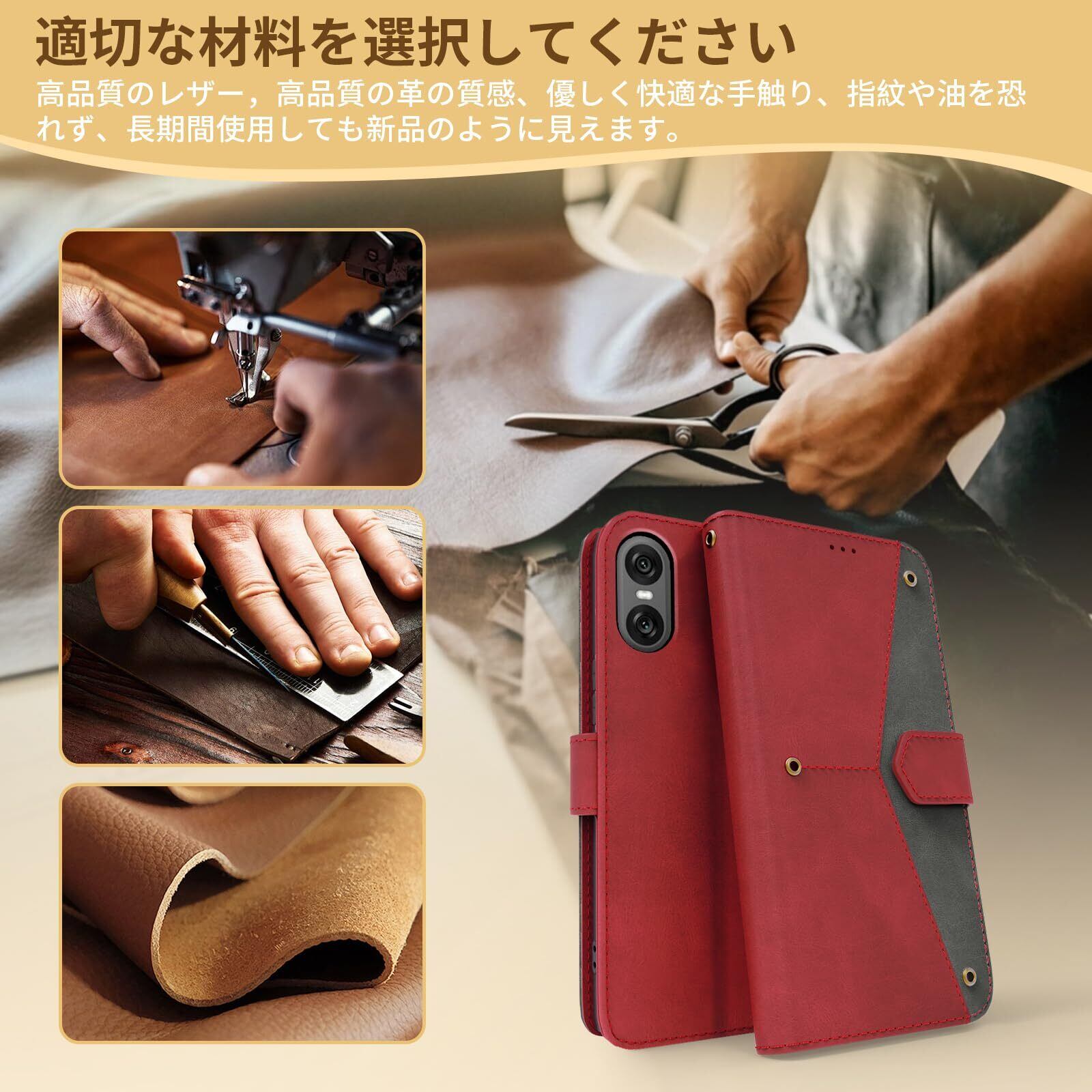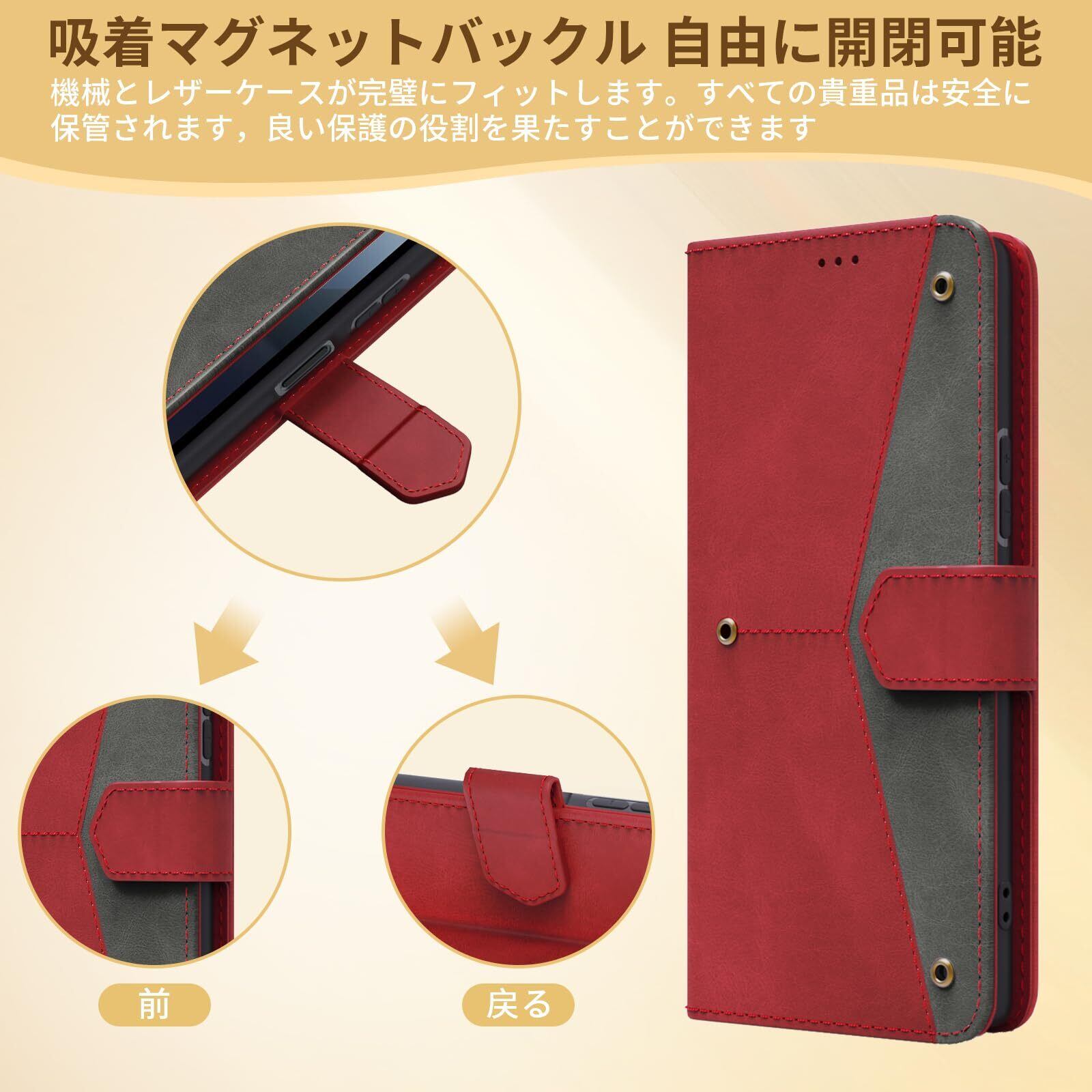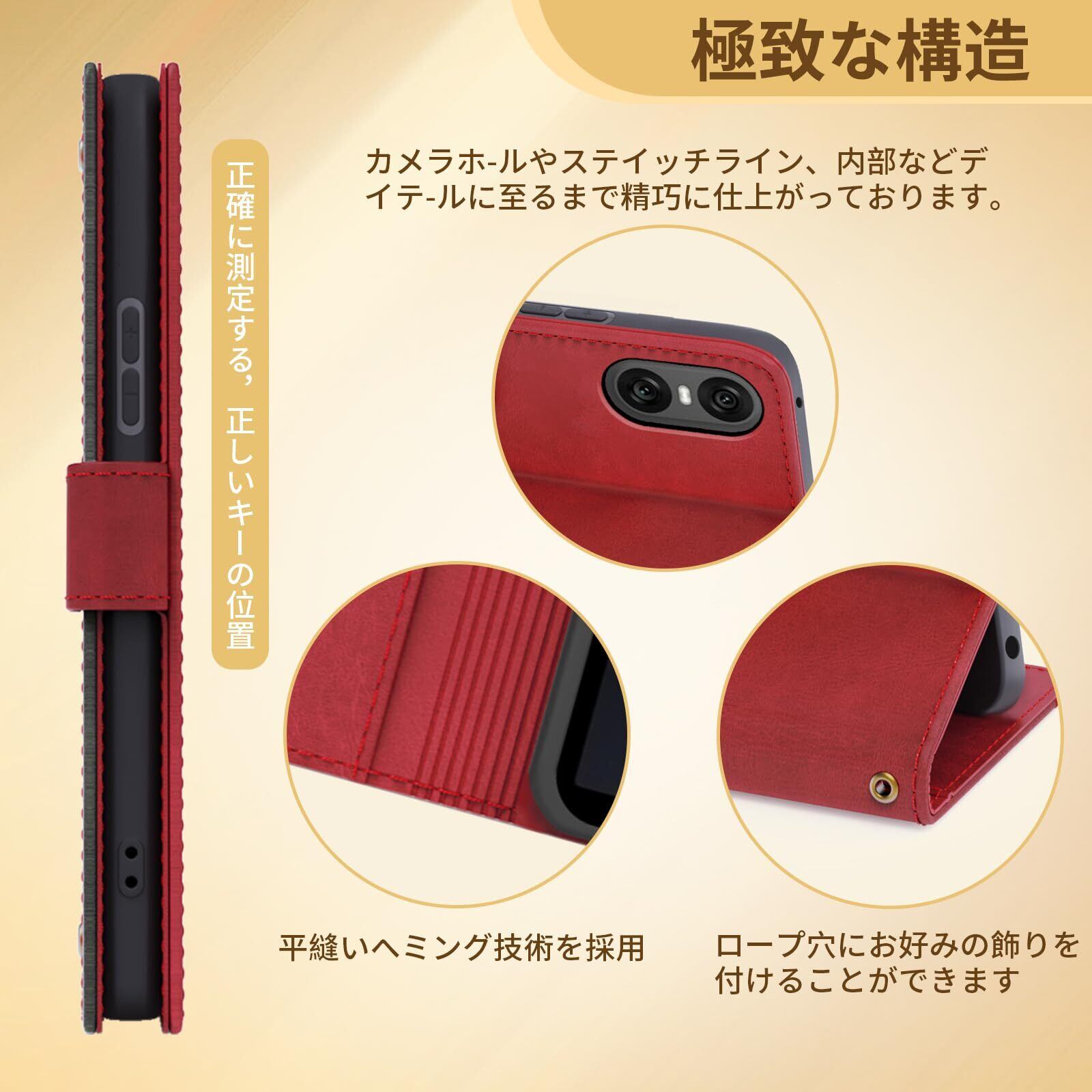 Xperia 10 VI ケース 手帳型 財布型 全面保護 耐衝撃 エクスペリア 10 VI スマホケース カード収納 肌感レザー ラップホール付き 横置き機能付き マグネット内蔵 SO-52E SOG14 XQ-ES44 携帯カバー 指紋防止 耐摩擦 ファッション ベルトマグネット,レッド