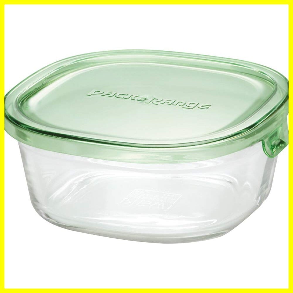 iwaki イワキ 耐熱ガラス 保存容器 グリーン 角型 S 450ml ごはん 1膳 パック&レンジ