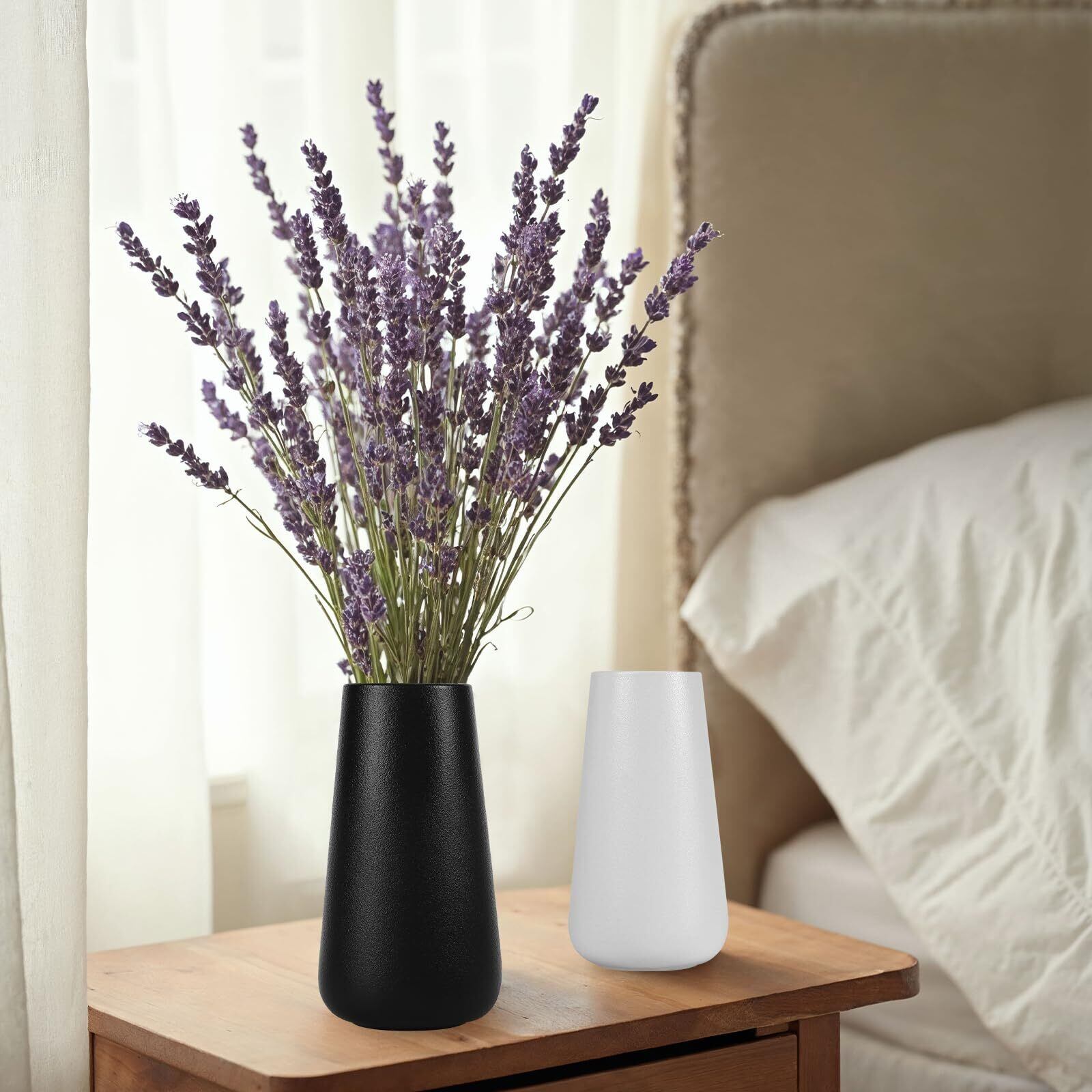 CeiBand 花瓶 かびん 陶器 花器 フラワーベース 北欧風 和風 セラミックス 大きい いけばな 花入れ 母の日 ギフト シンプル 飾り物 おしゃれ インテリア飾り プレゼント 祝い 贈り物 水栽培 上品 洗いやすい 玄関 置物 (大口径9.5 cm*小口径6.5 cm*高さ20 cm, ブラック)