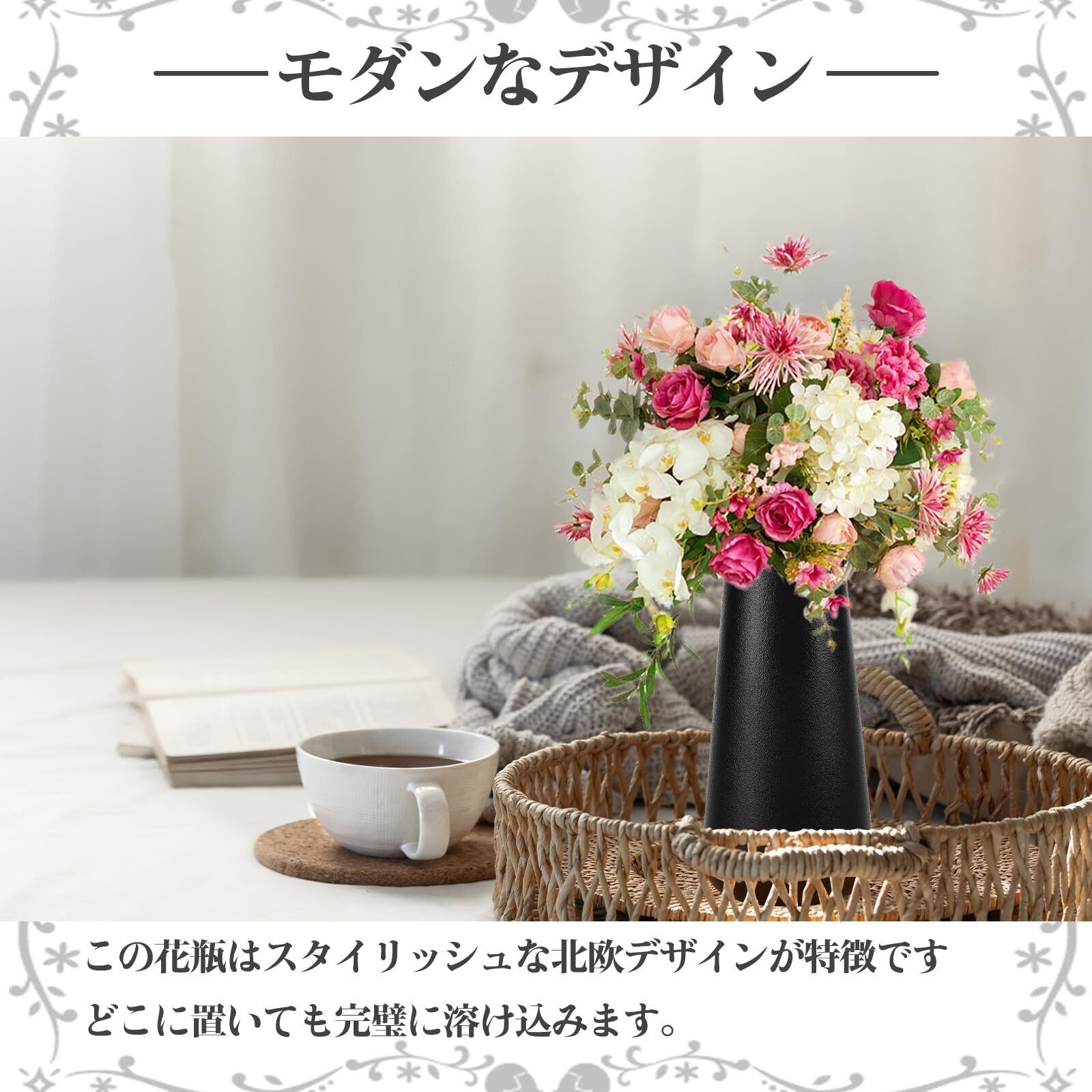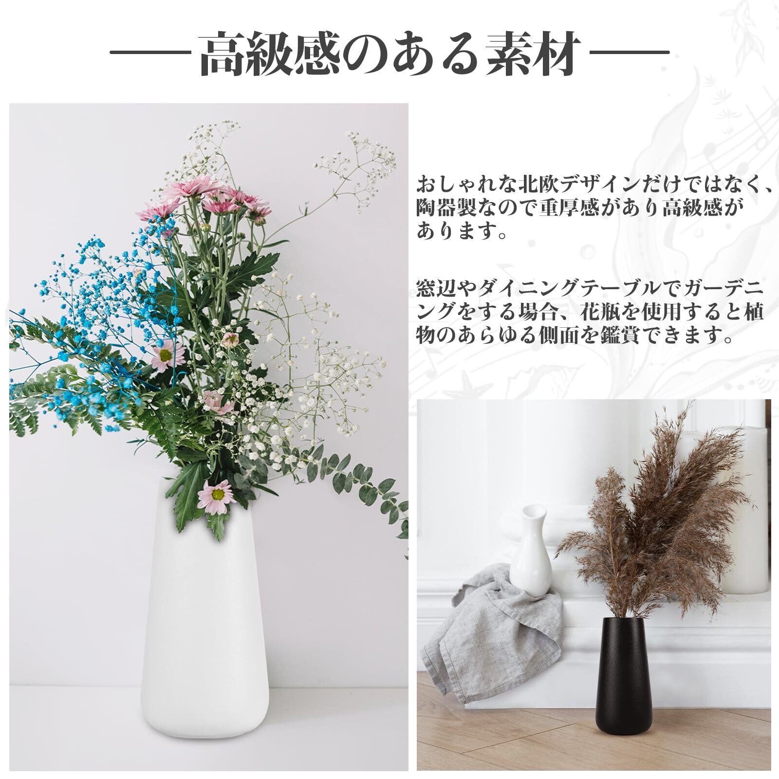 【上質なシンプル】 本花瓶は、厳選された上質な素材と丁寧な手作業によって仕上げられており、手作りならではの温もりを感じられます。シンプルなカラーと優雅なラインが、美しさを静かに引き立て、花そのものの魅力を際立たせます。さらに、陶器製で透明ではないため、花の茎部分が隠れ、全体の美観とインテリアとしての完成度がより一層高まります。