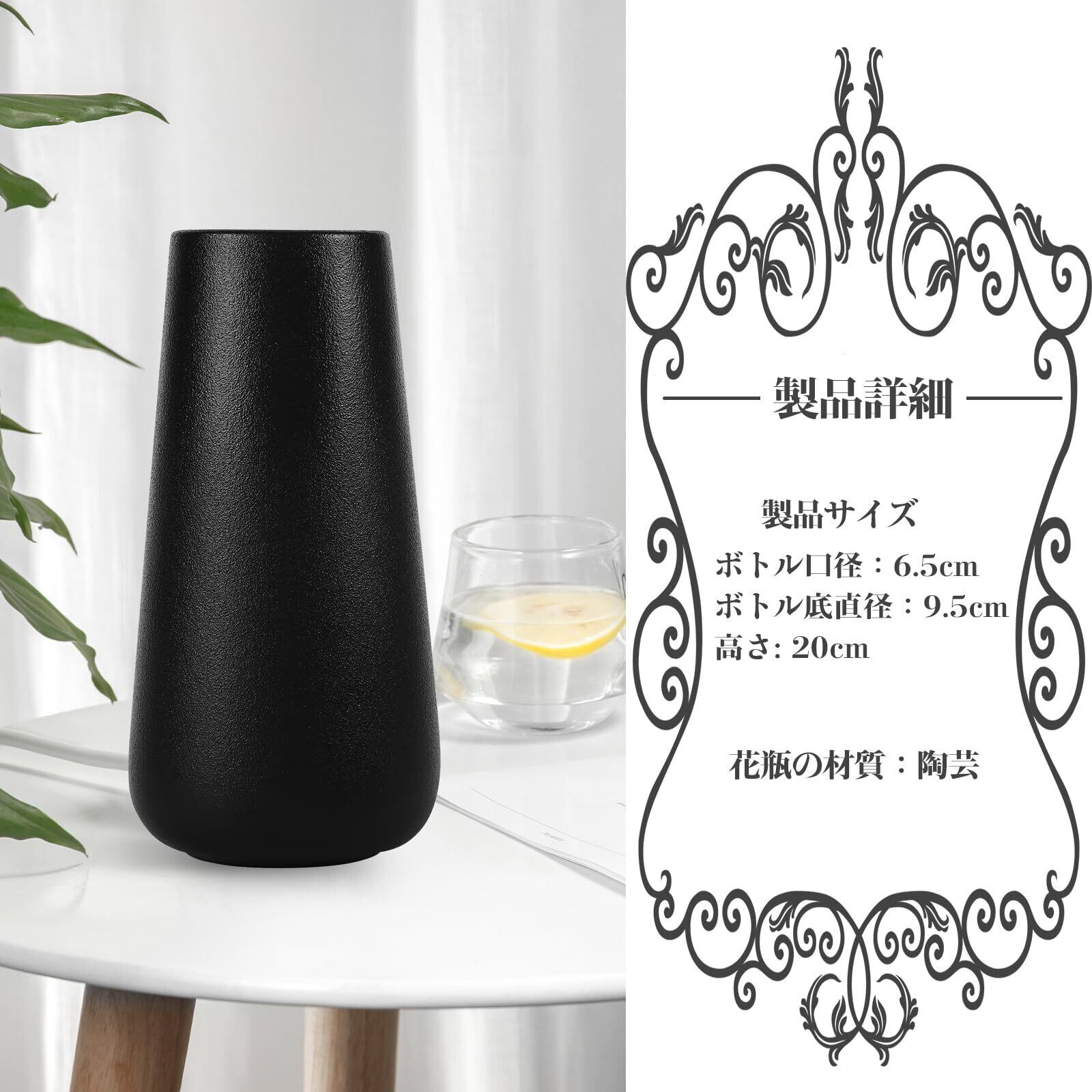 【サイズ】 瓶口直径:6.5cm、瓶底直径:9.5cm、高さ:20cmです。 [材質] 陶器です。ご注意:ご購入前に本花瓶の口径と高さが似合うかどうかご確認くださいませ。
