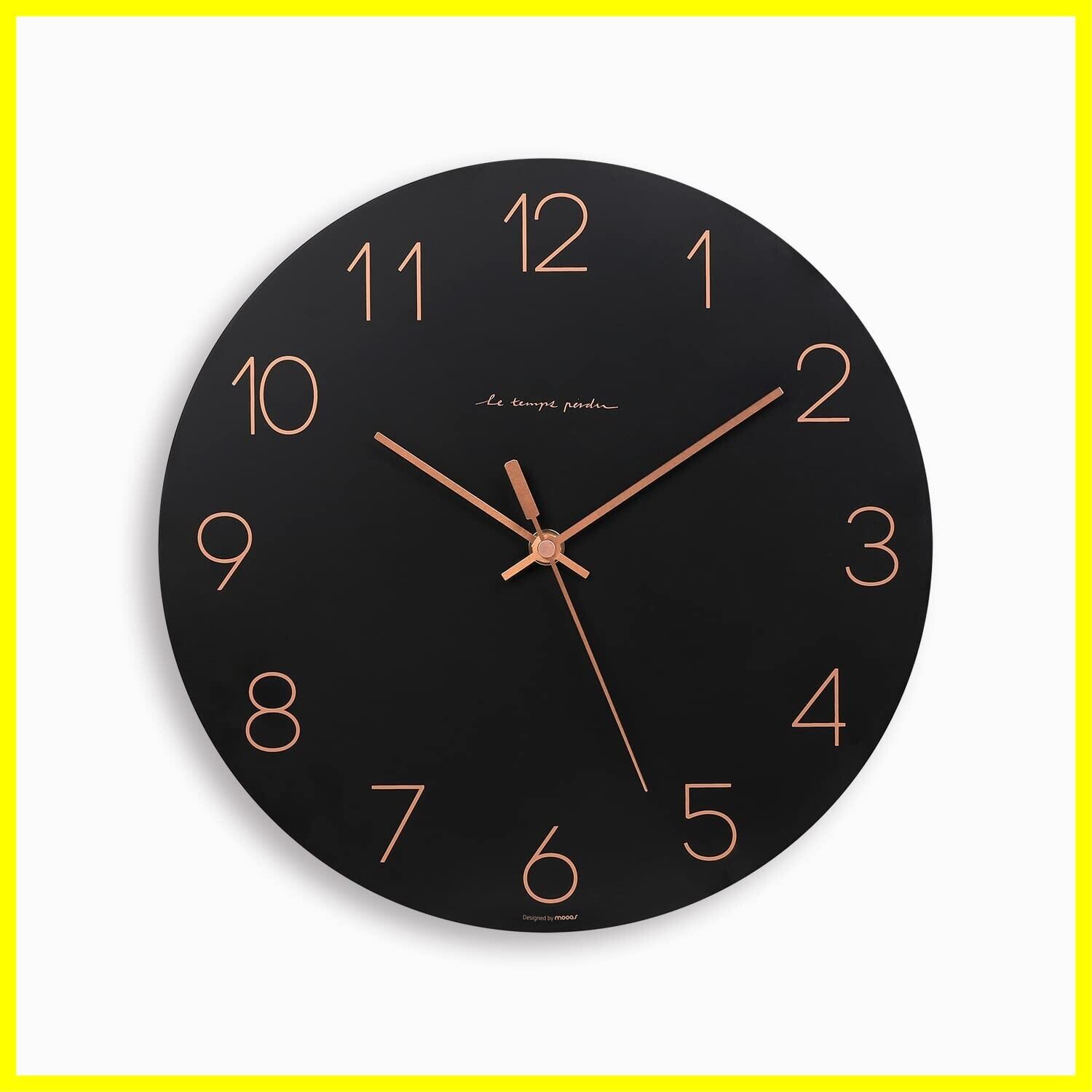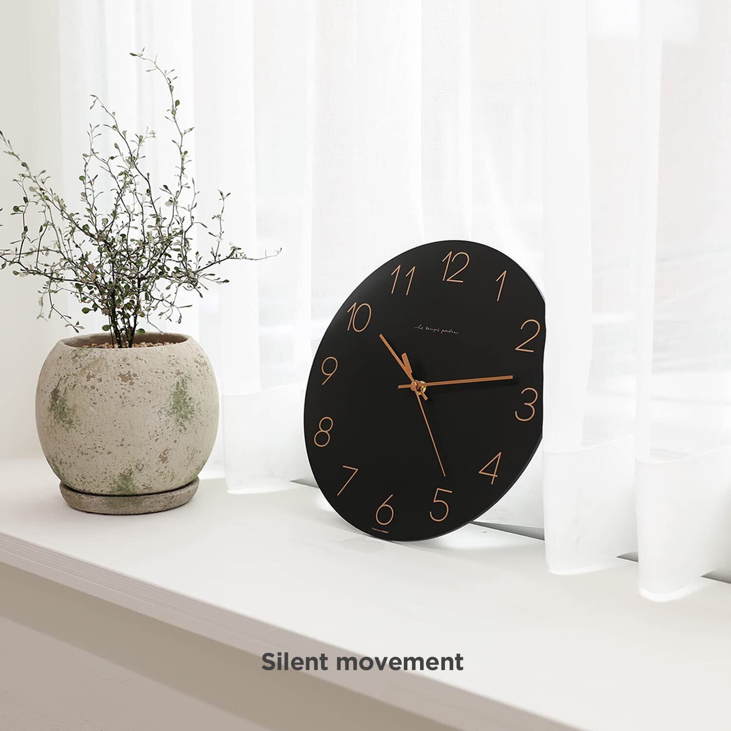 mooas フラットウッドの壁掛け ブラック30.5cm/12インチのウォールクロック、ノンチックサイレント装飾時計、バッテリー作動、金属時計の針、読みやすいホームリビングキッチンベッドルームオフィススクールホテル用