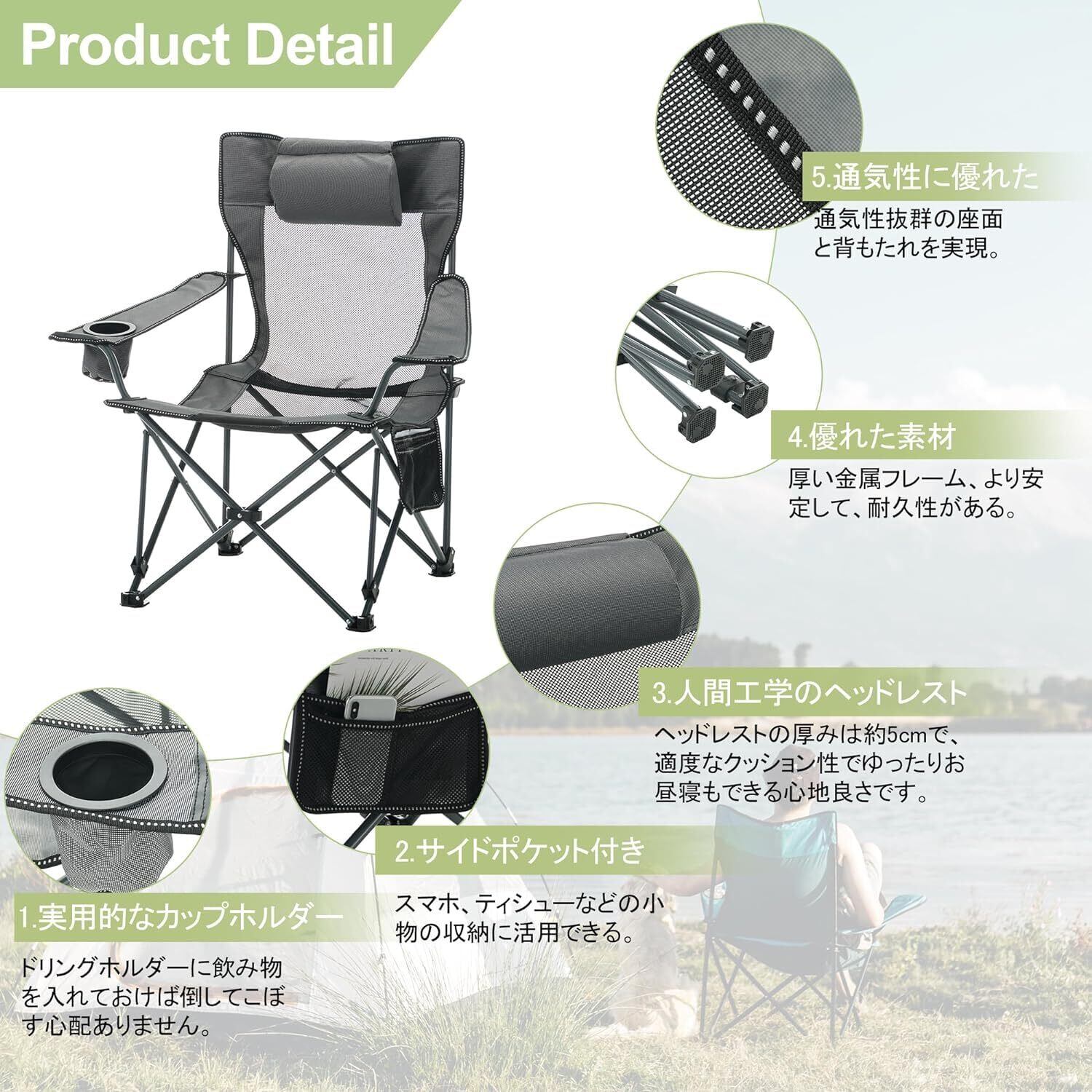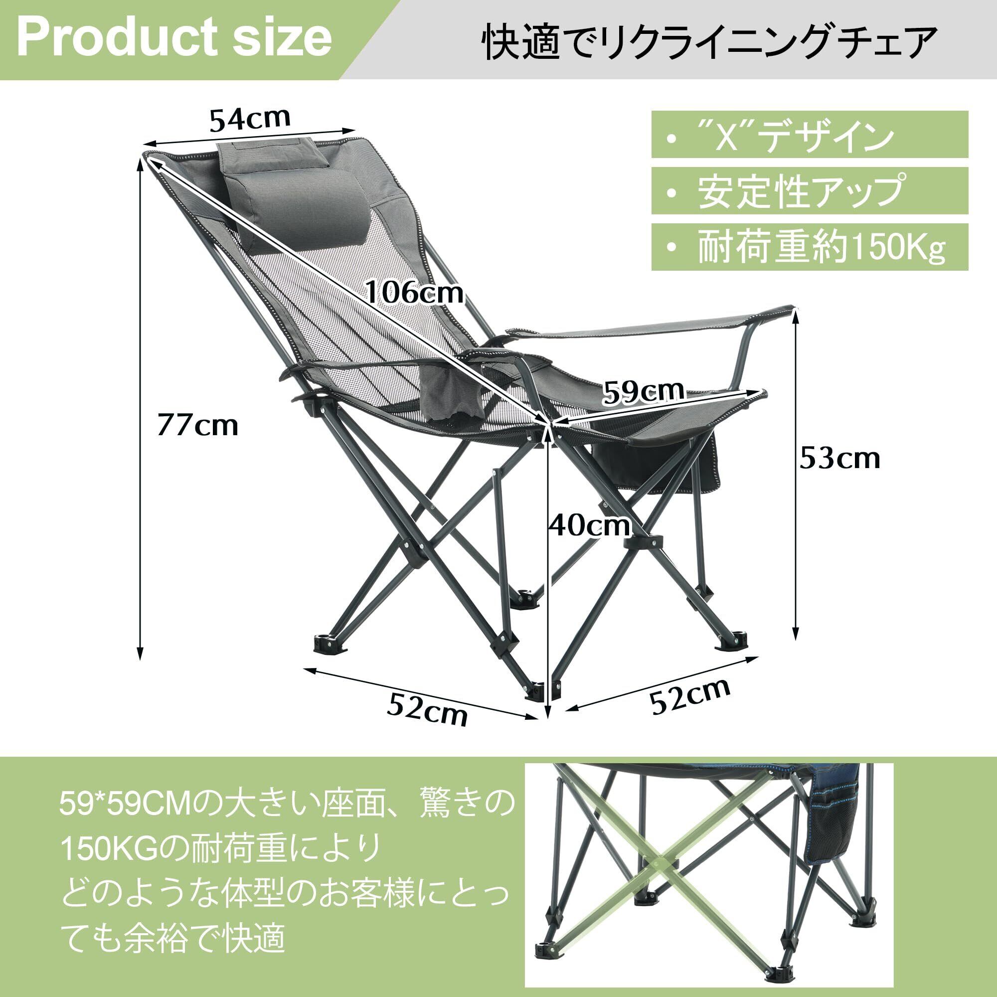 【人間工学デザイン&耐荷重】 背もたれは人間工学に基づいて、頭、臀部、背中を支えるように設計されており、横になっているときに余暇を楽しむことができます。 製品の耐荷重性能は高水準でテストされ、145kgの耐荷重確保されています。どんな状況においても、信頼性と安心感を持って使えるアウトドア椅子です。