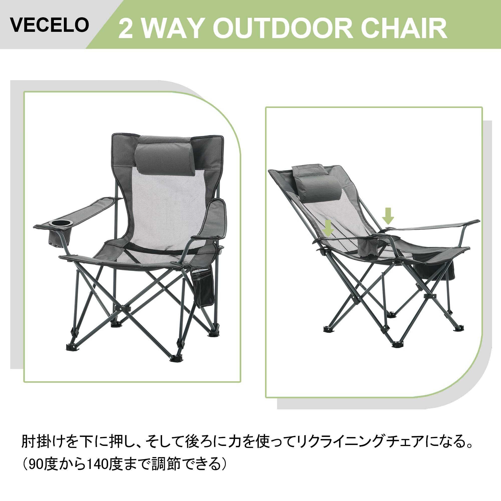 VECELO アウトドアチェア アウトドア 折りたたみ椅子 コンパクトチェア キャンプ椅子 キャンプチェア ひんやり生地 軽量 椅子 カップホルダー付き ポケット付き ソロキャンプ リクライニングチェア 完成品 収束式 収納袋付属 携帯便利 耐荷重150kg お釣り 登山 お花見 ハイバック
