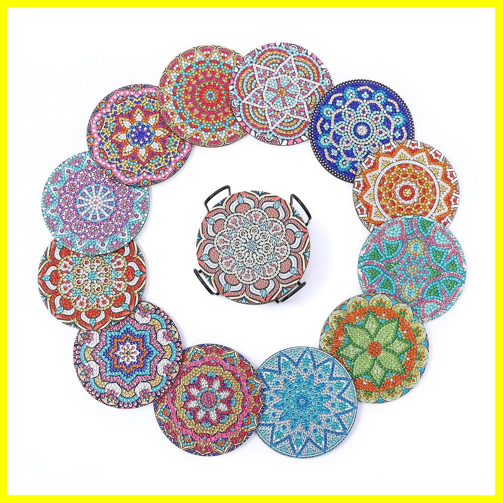 ELECTRO-WEIDEWORLD ダイヤモンドアート コースター キットビーズアート ダイアモンドアート セット DIYダイヤモンドペインティング 5Dダイヤモンド塗装キット ホルダー付き コースター 手芸キット 初心者 大人 子供用 人気 手作り アートクラフト用品 (曼荼羅B(12個入))