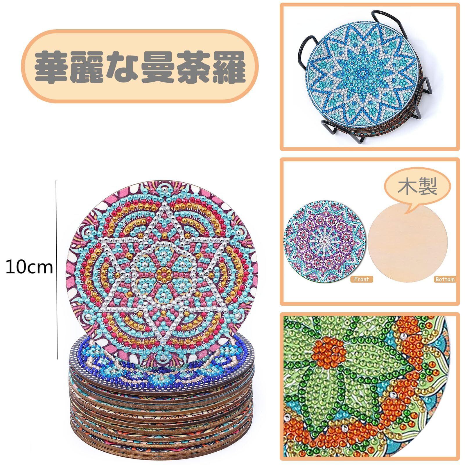 【商品仕様】ダイヤモンドコースターサイズ:直径:10 cm、コースター素材:木製、セット内容:コースター12+ホルダー1+ダイヤモンド塗装工具セット