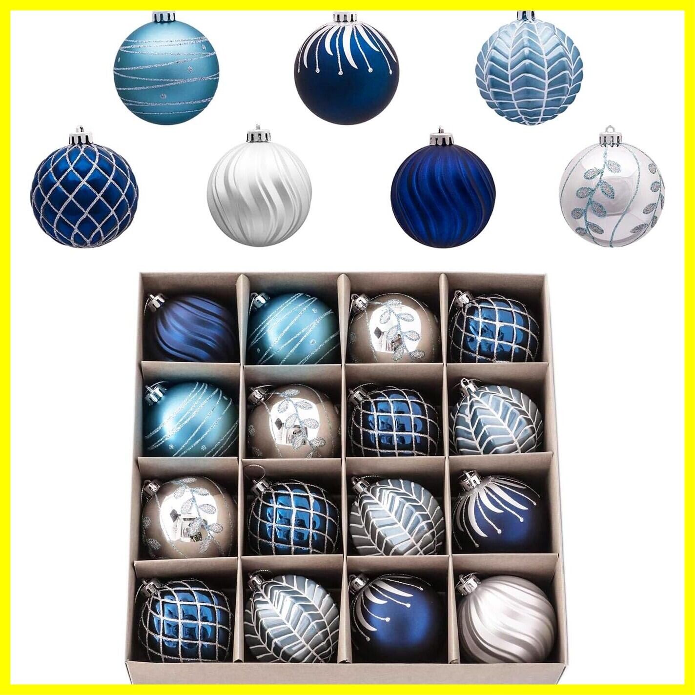 【パッケージとサイズ】クリスマスオーナメントセットには、銀、青、白のクリスマスボール16個が含まれています。各ボールはシームレス接続を採用し、洗練された外観を作り出しています。ボックスには高品質のエコボール箱を採用し、贅沢感を加えます。