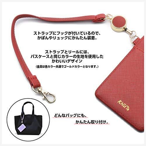 高品質PUレザー素材を使用したリール付きパスケース。上部取付タイプ。サフィアーノ加工により水に強く、耐久性に優れたデザイン。