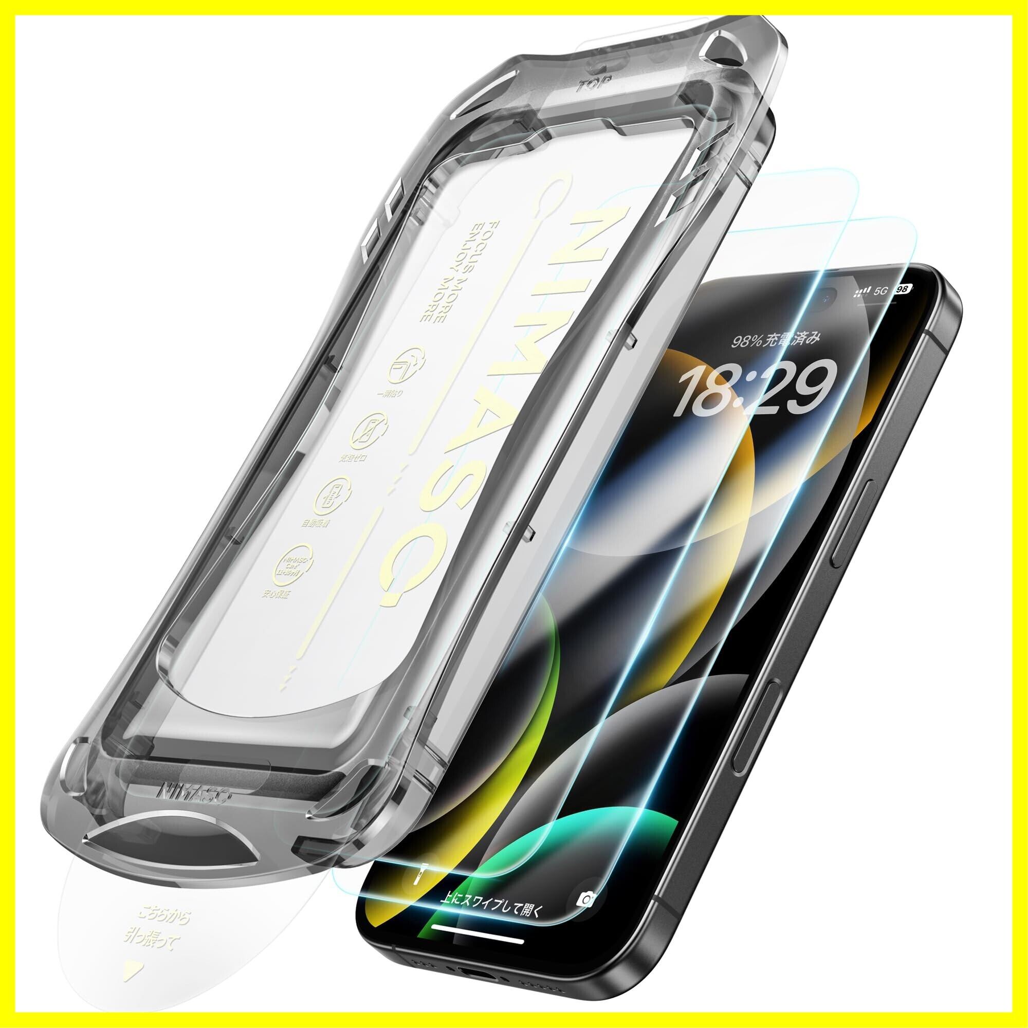 NIMASO ガラスフィルム iPhone 16 Pro/iPhone 17用 強化ガラス 保護フィルム 自動除塵 超簡単貼り付け 耐衝撃 指紋防止 ガイド枠付き 2枚セット アイフォン16 プロ/アイフォン17対応(6.3インチ)DSP24I1527