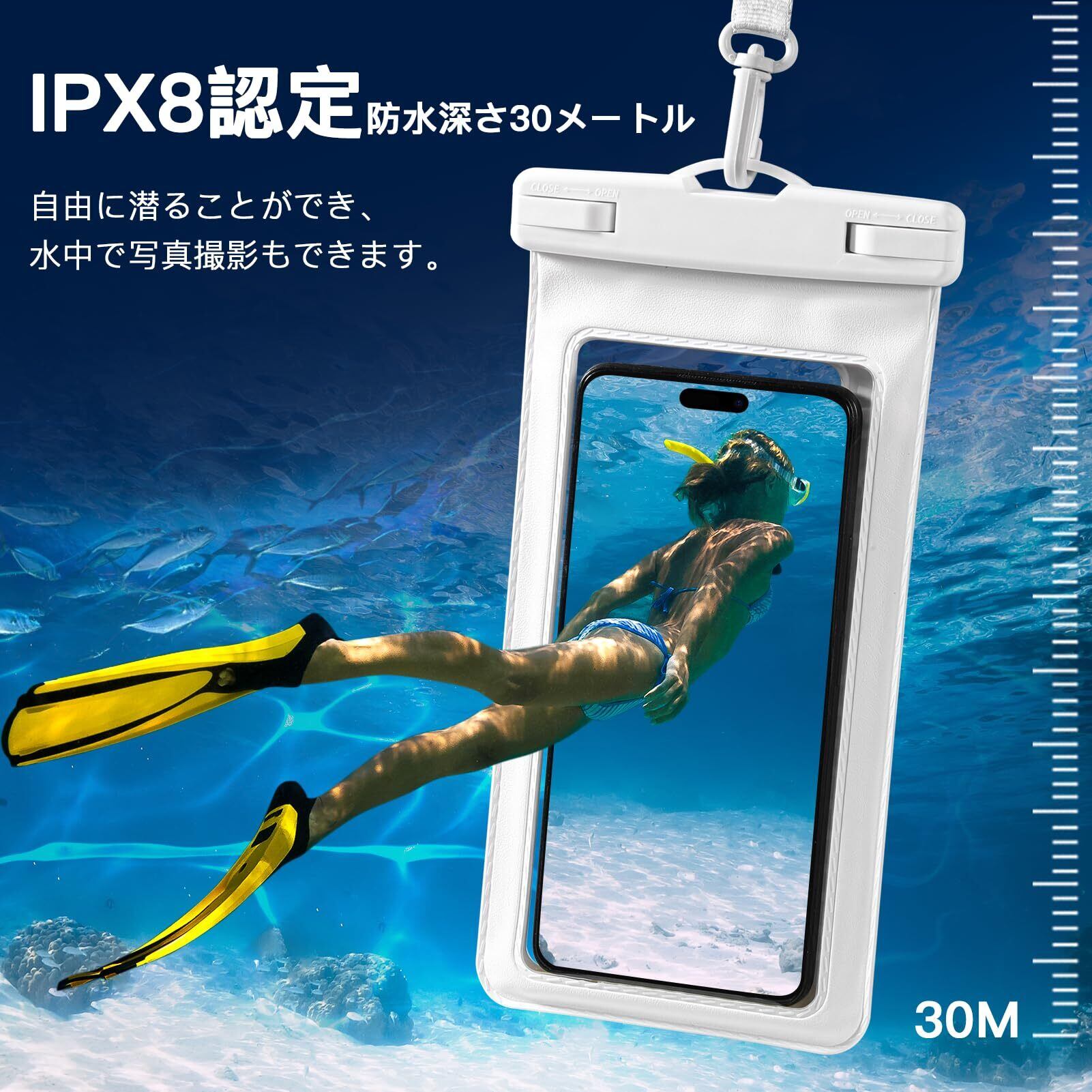 【IPX8認証防水気密性良好】このFirrazleスマホ防水ケースは防水国際保護等級IPX8認定を獲得し、国際的な防水規格で最高レベルです。水気のある場所だけでなく、水中での操作にも圧倒的な耐性があります。水深30mで30分間水浸しても一滴の妥協もなし。