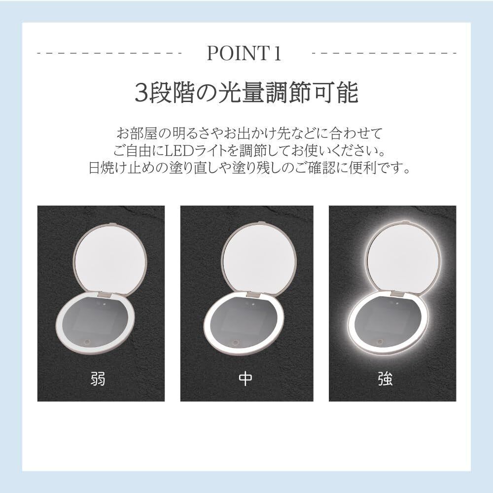 【多機能で日焼け止めの効果をサポート】LEDライトや拡大機も付属しており、肌をきめ細やかに確認出来ます。商品も小さいのでハンドバッグに入れやすく、長持ちするバッテリーのため外出時にオススメのメイクミラーです。