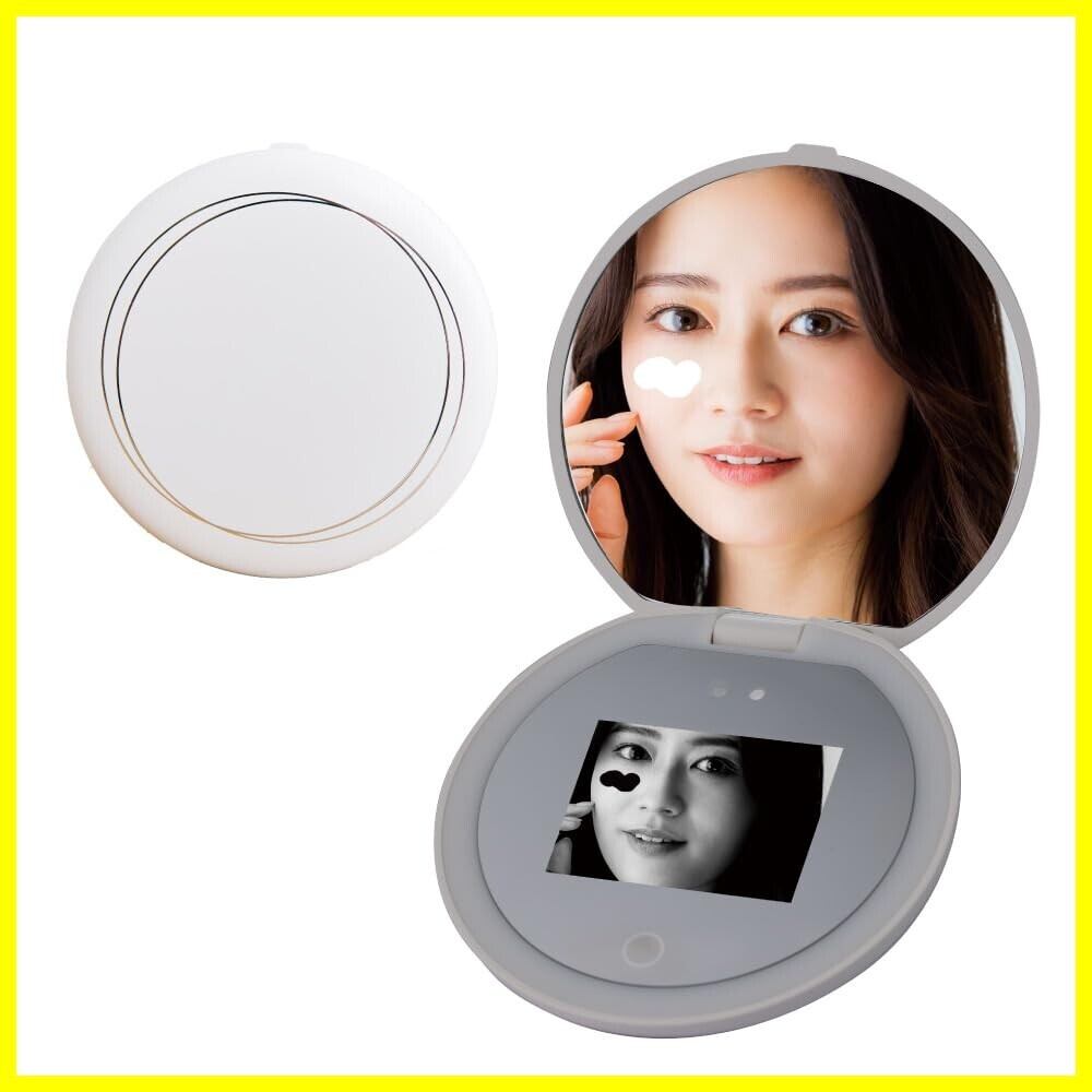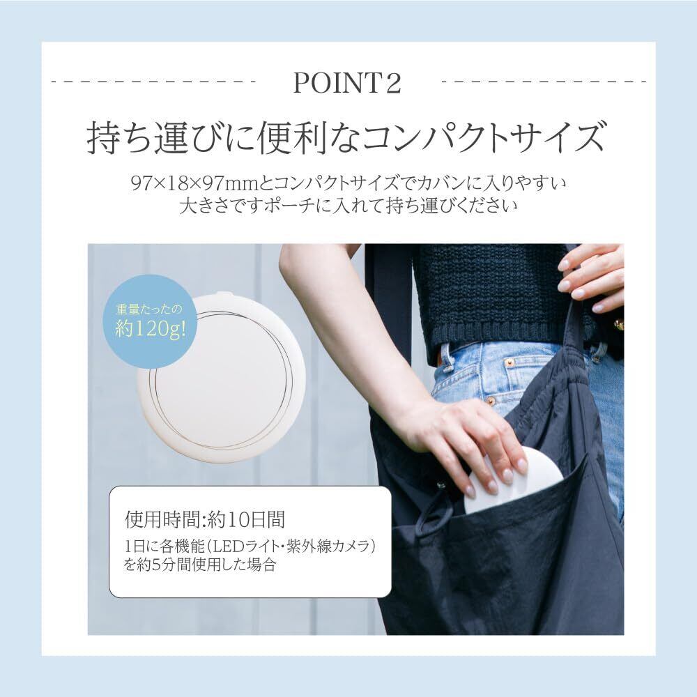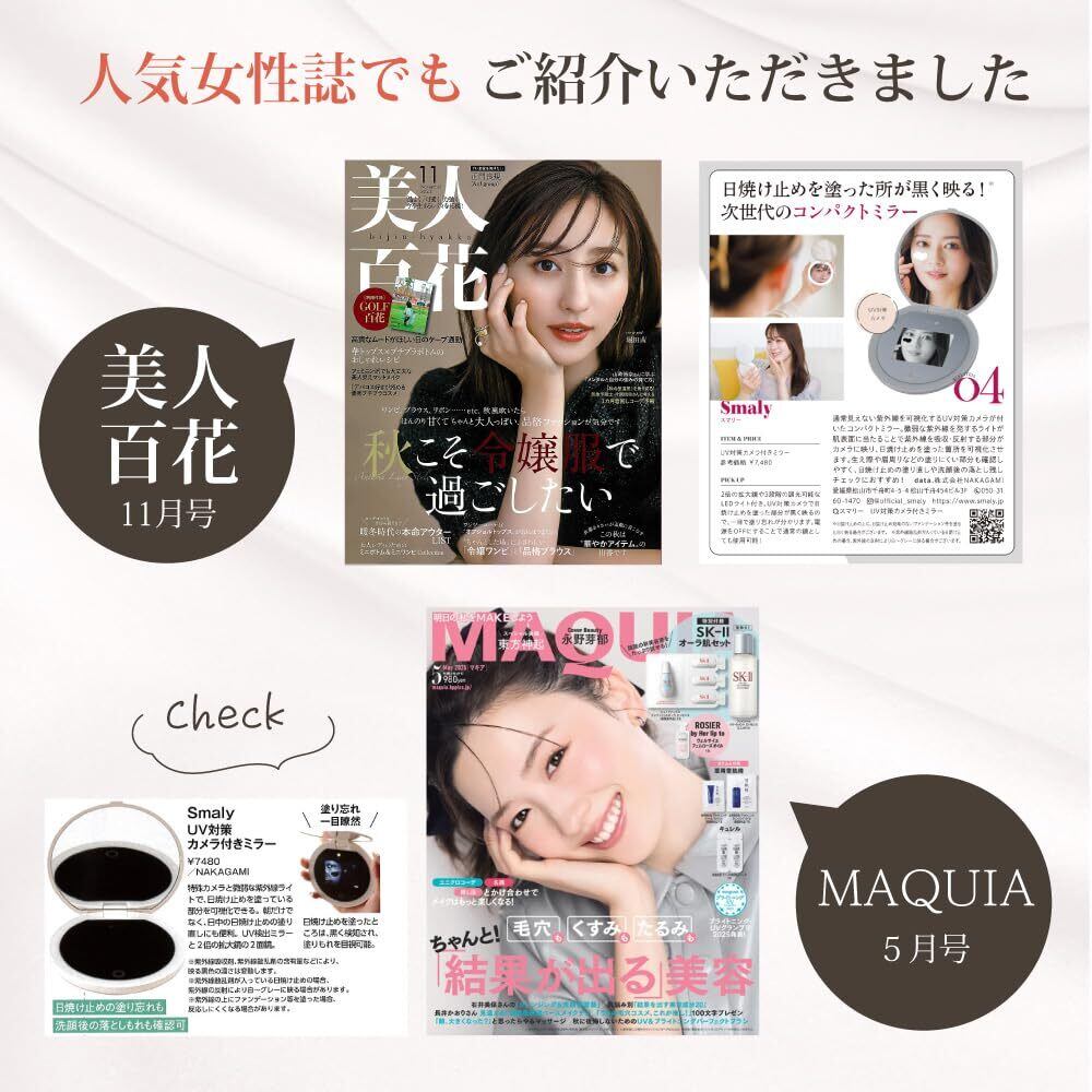 \美人百花 MAQUIA掲載/ smaly UVミラー 日焼け止め塗り残しチェック LEDライト付き 日焼け止め サンスクリーンミラー UV検出 手鏡 コンパクト 化粧直し 鏡 ミラー メイク USB充電 3段階調光 美容グッズ 円形 丸型 円 ポータブル 持ち運び スマリー ナカガミ