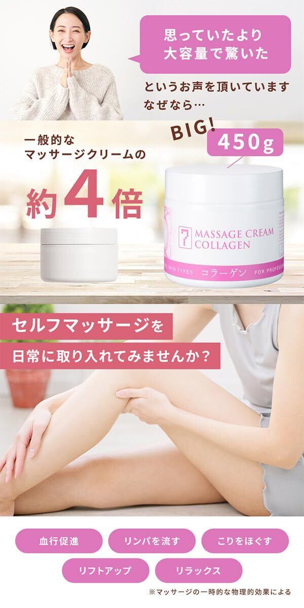 SEVEN BEAUTY マッサージクリーム コラーゲン 450g 業務用 [ 業務用 大容量 顔 ボディ 拭き取り不要 むくみ フェイシャル フェイス ]