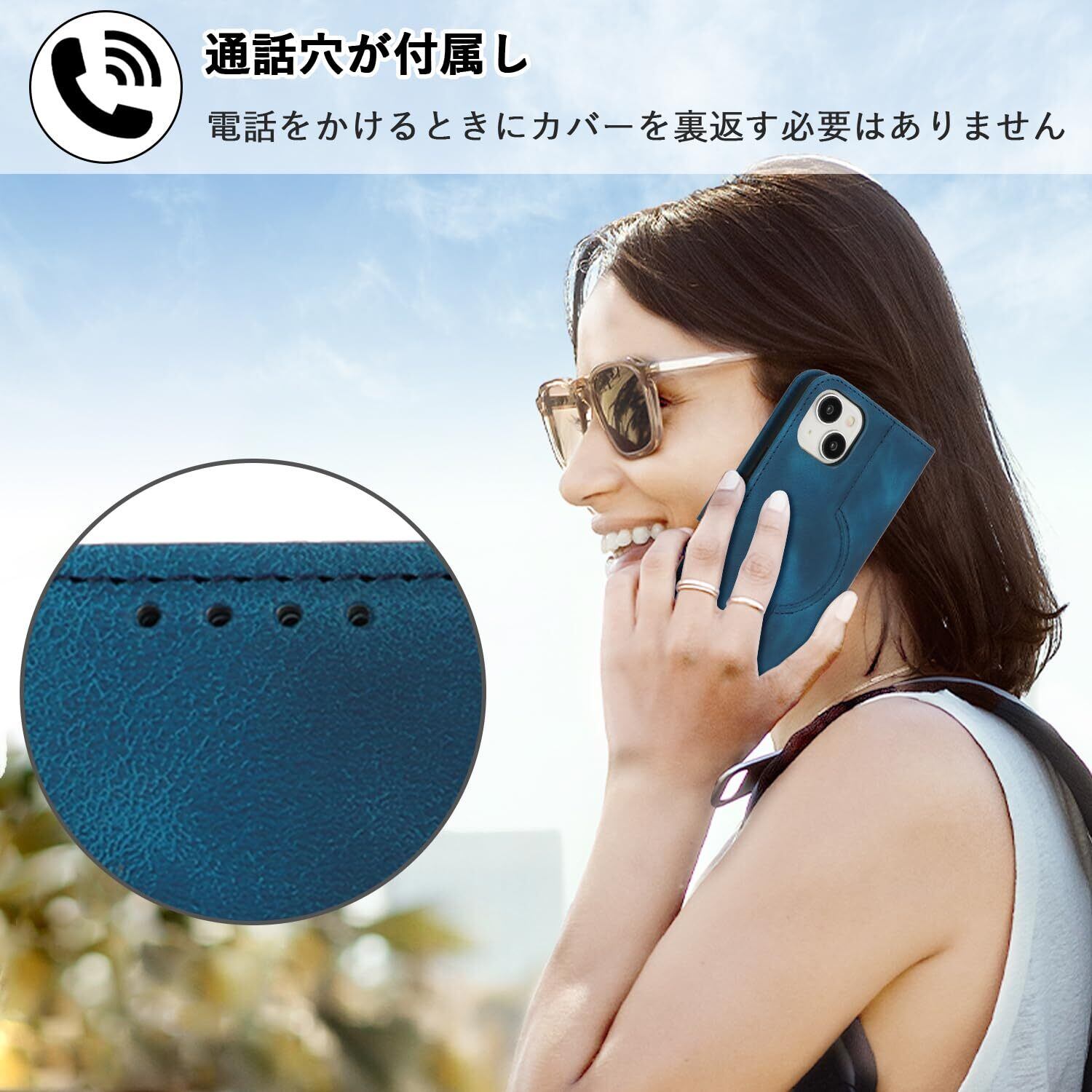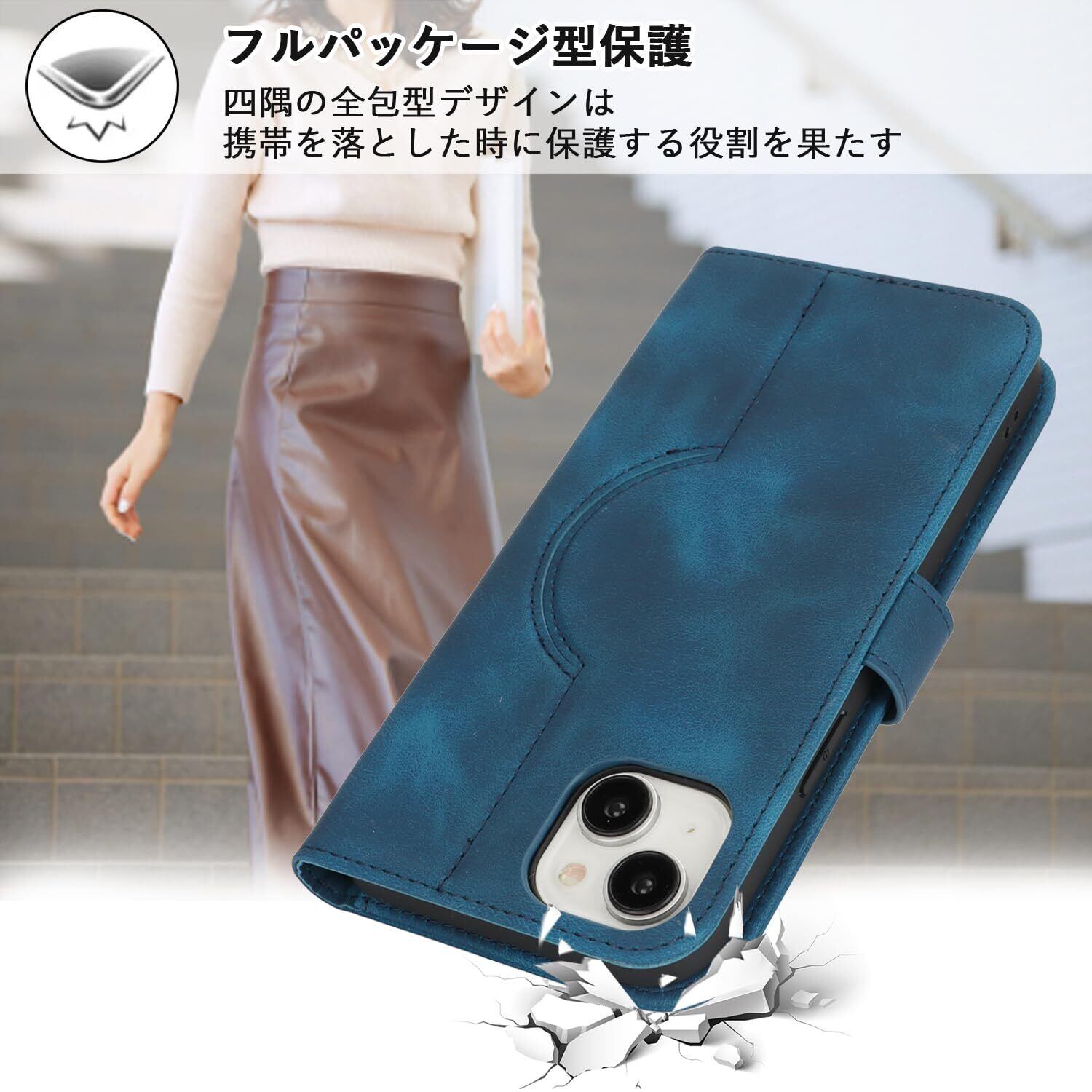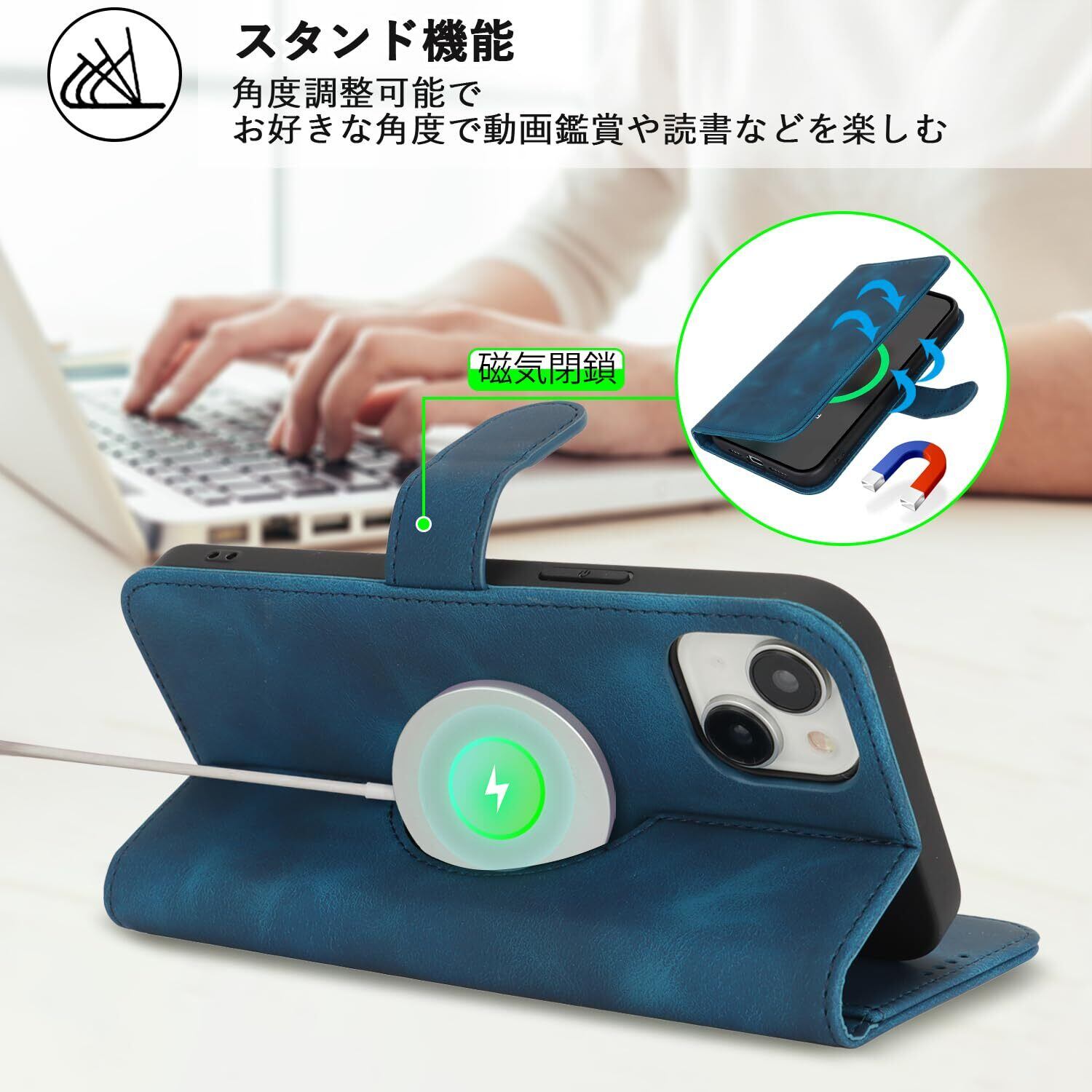 【Hamany】 対応 iPhone 15 ケース Magsafe対応 あいふおん15ケース ワイヤレス充電対応 カード収納 スタンド機能 マグネット式 いphone15 ケース 手帳型 耐衝撃 耐久性 耐摩擦 携帯ケース iphone 15 レザー -スエードの質感ブルー
