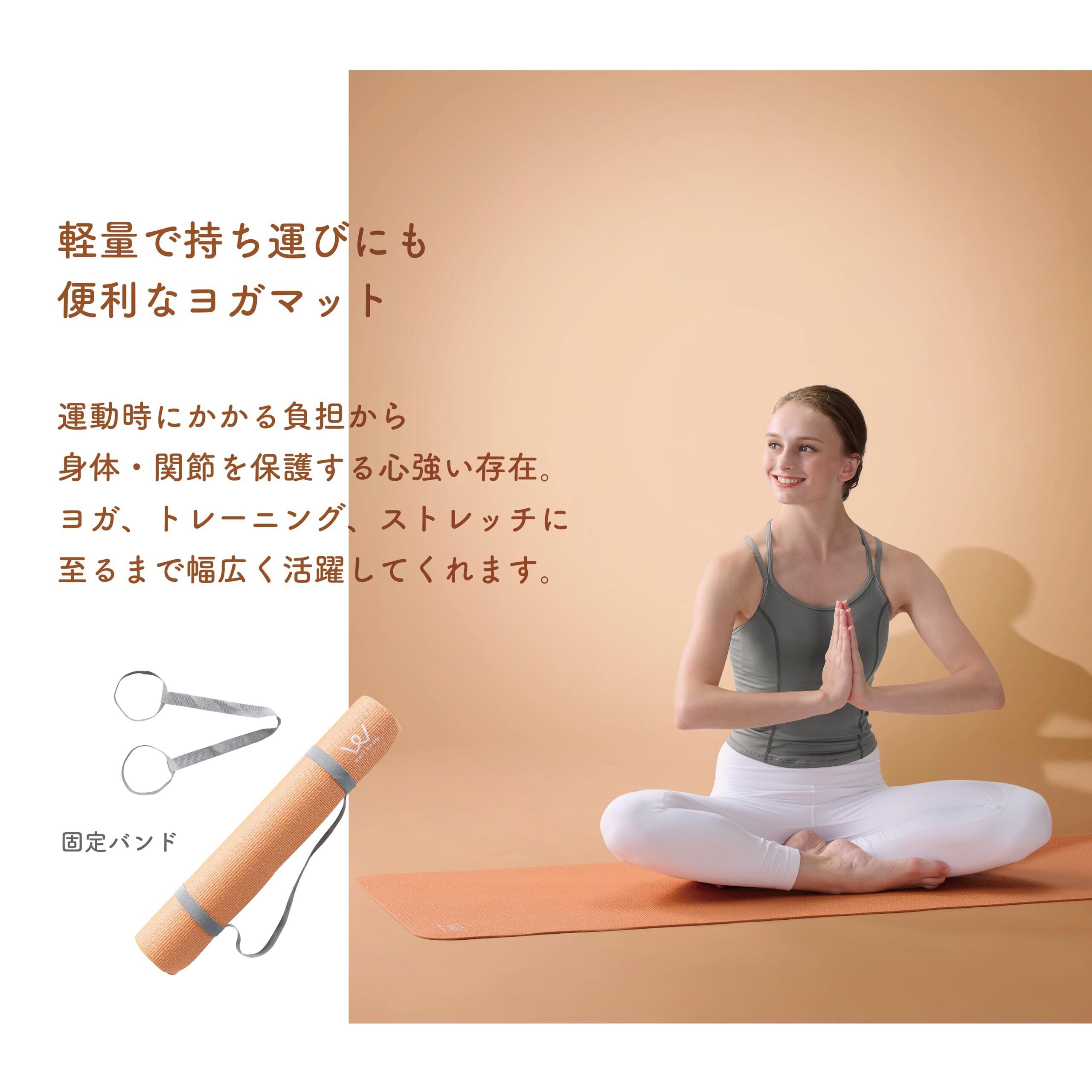 【軽量で扱いやすいヨガマット】軽量で扱いやすい厚みのヨガマットです。豊富なカラー展開で自宅の家具の色に合わせることもできますし、お好みのカラーを選べます。厚みは軽くて持ち運びにも便利な4mmタイプと、身体への衝撃を吸収する6mmタイプの2種類から選べます。
