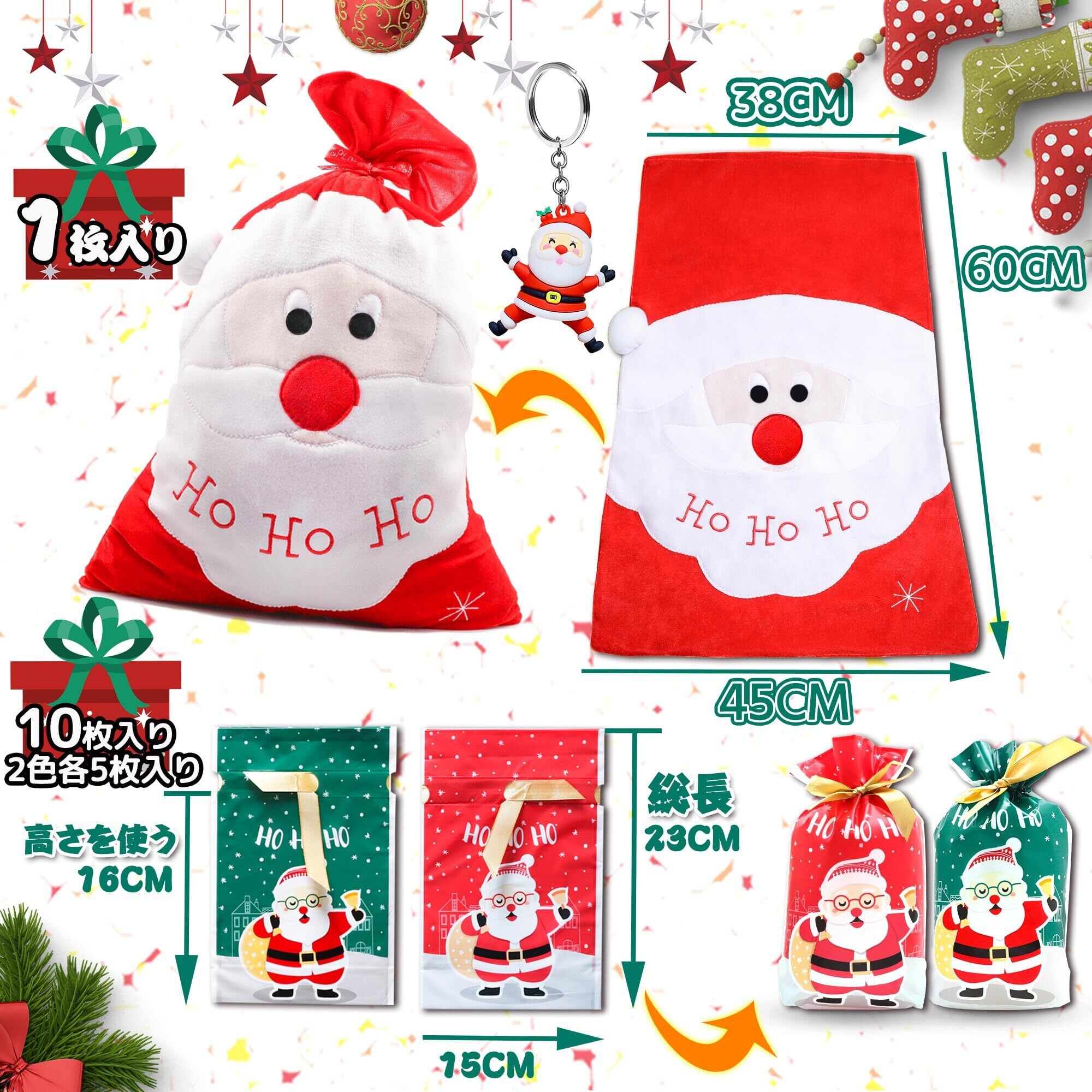 クリスマス 袋 ラッピング クリスマス 超特大 袋 クリスマスプレゼント45X60cm 1枚入、15X23cm 10枚入付き サンタクロース クリスマスラッピング