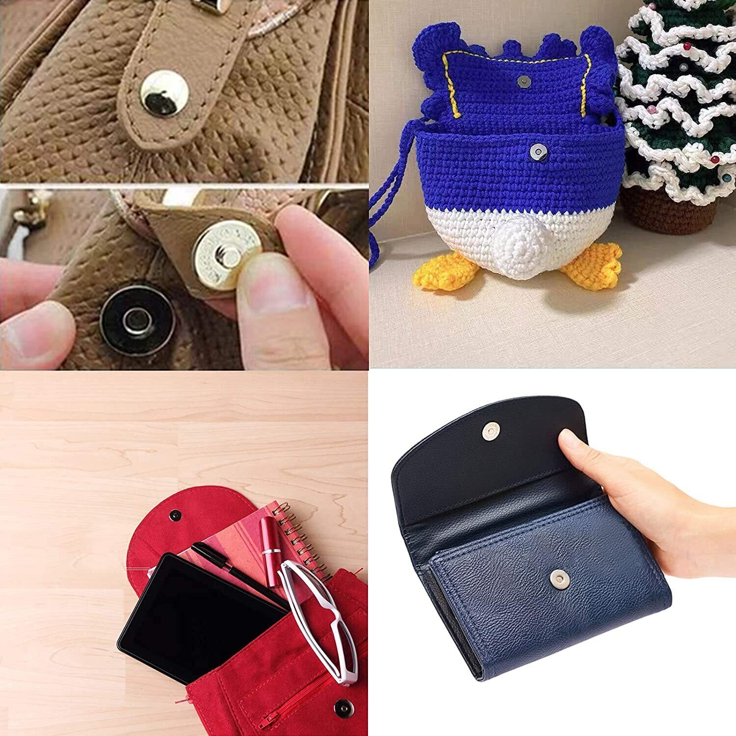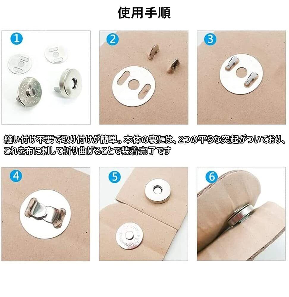 4.バッグやポーチの口止めに便利なマグネットホック、針や糸が使えないものや、縫いたくないなんていう場合にとても便利です。 マグネットは超強力、重い荷物を入れても、大きなバックにもご使用いただけます。