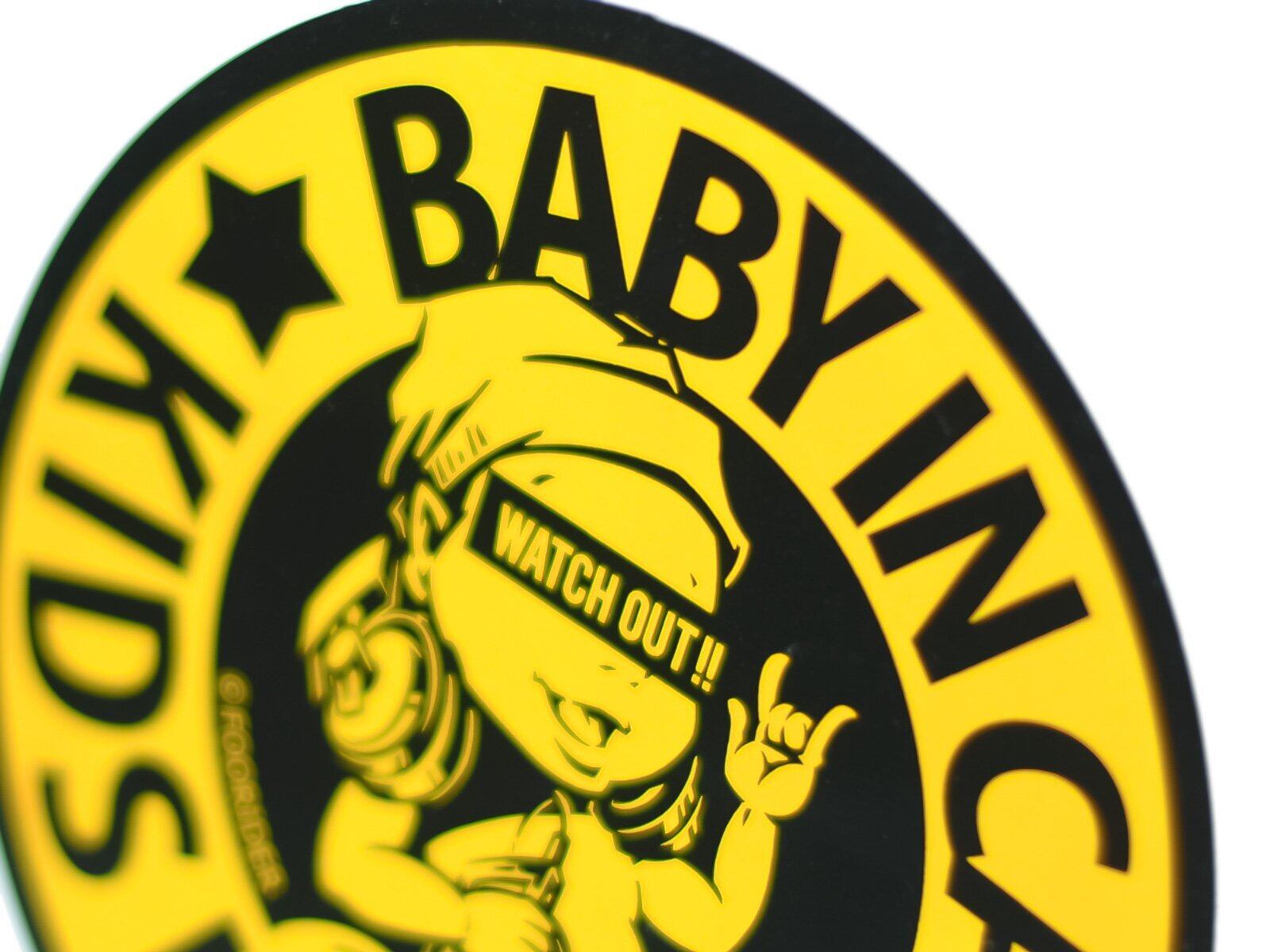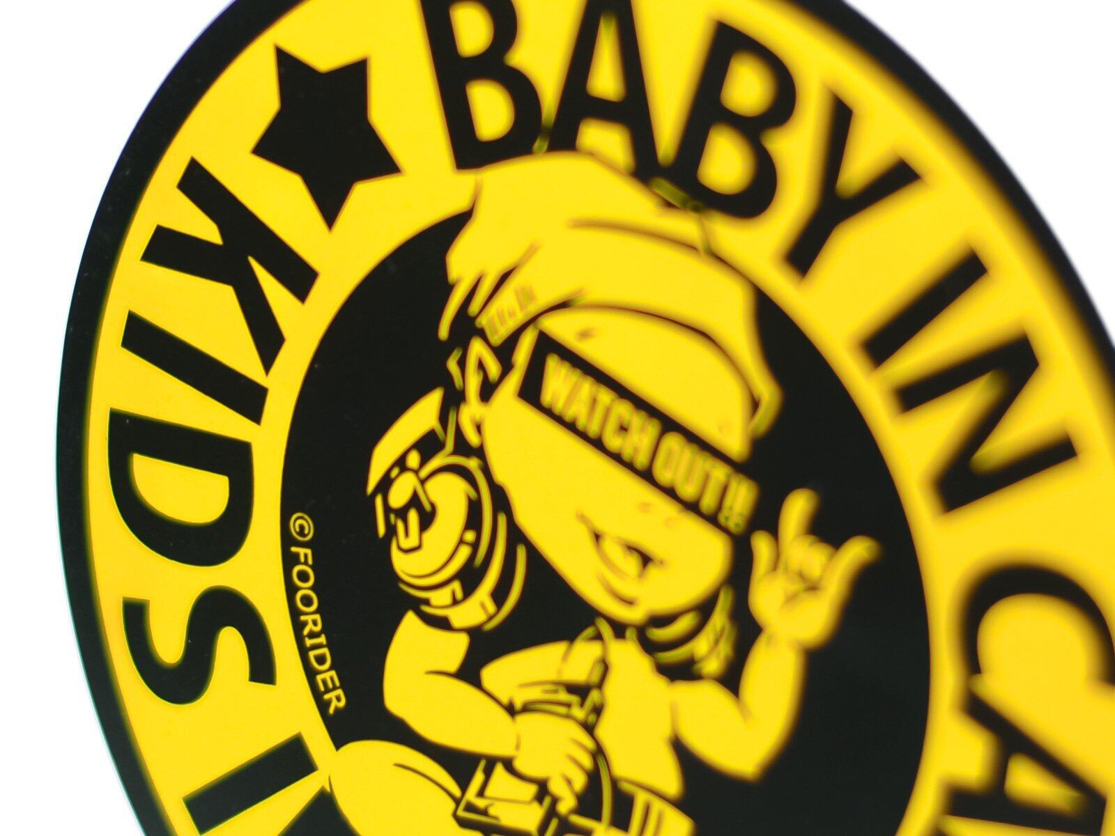 大阪を拠点に日本国内外で活躍するイラストレーター(FOORIDER)がデザインした、赤ちゃん乗ってますステッカーです