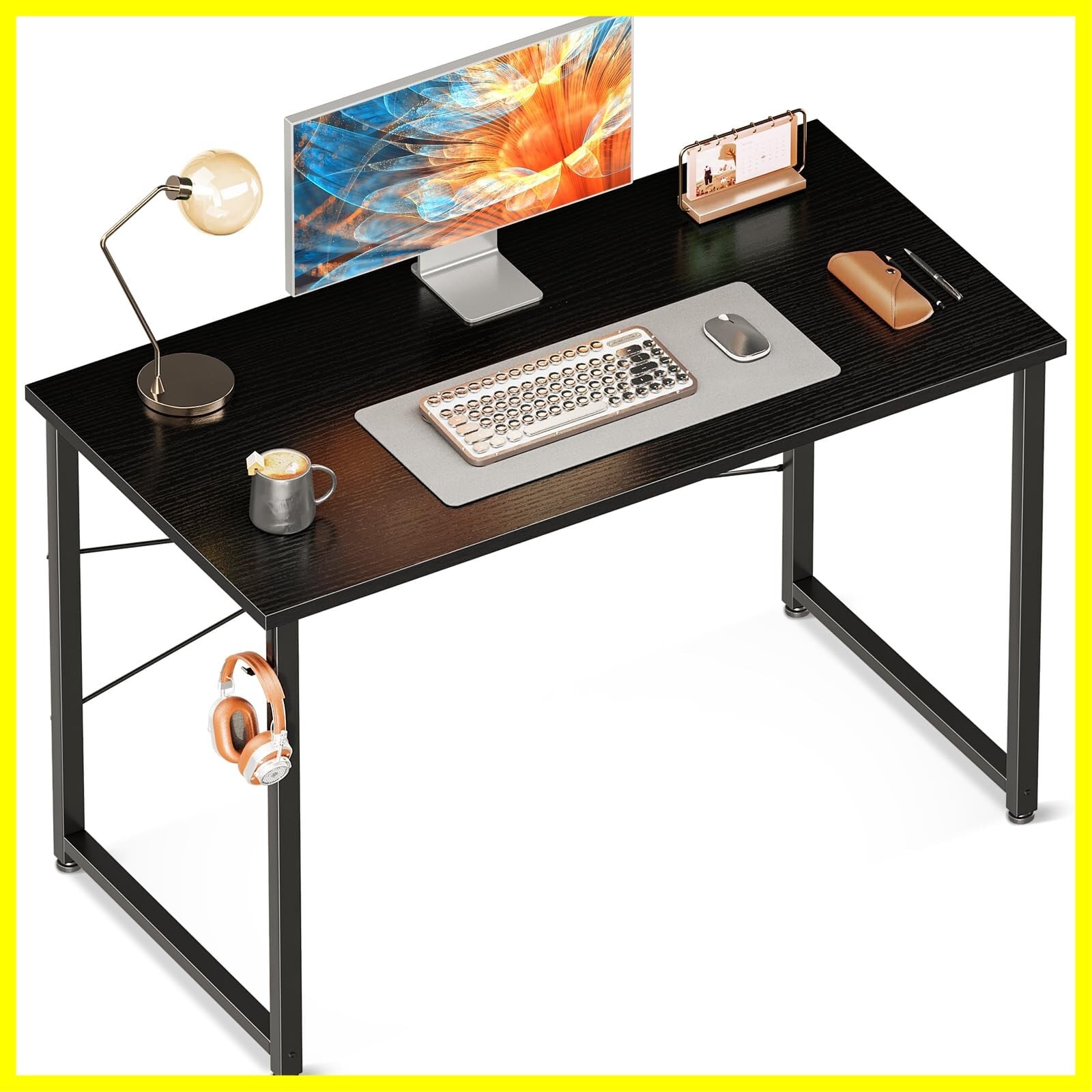ODK デスク 机 pcデスク 幅100cm ゲーミングデスク パソコンデスク シンプルデスク 桌子 computer desk 学習机 コンパクト ワークデスク 电脑桌 フック付き 在宅ワーク おしゃれ 組立簡単 黒い